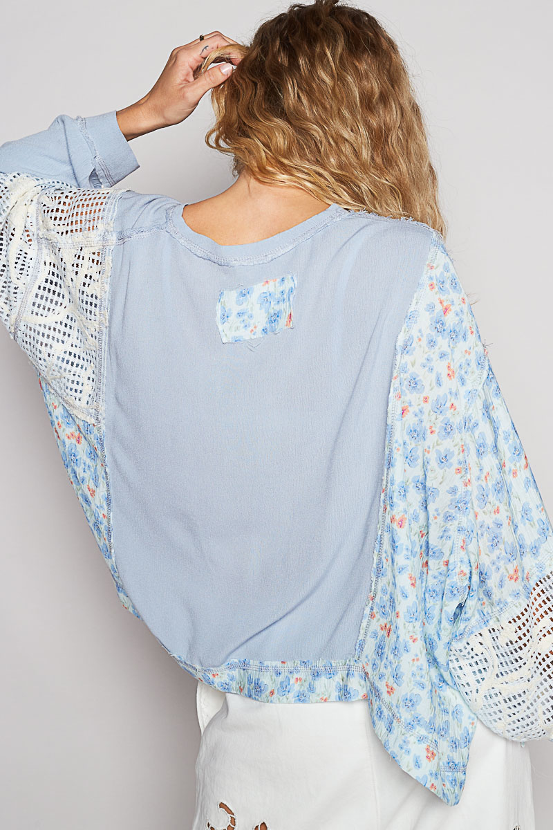 Introducing the round neck, balloon sleeve, cropped fit top in rayon gauze with a unique pointed floral pattern and overlock stitch detail. This top combines a trendy cropped silhouette with feminine balloon sleeves for a stylish yet comfortable look. Crafted from lightweight rayon gauze fabric, it offers breathability and ease of movement. The overlock stitch detail adds a modern touch, while the pointed floral pattern bring a touch of elegance to the design. Perfect for pairing with high-waisted bottoms, this top is a versatile addition to your wardrobe for both casual and dressy occasions.