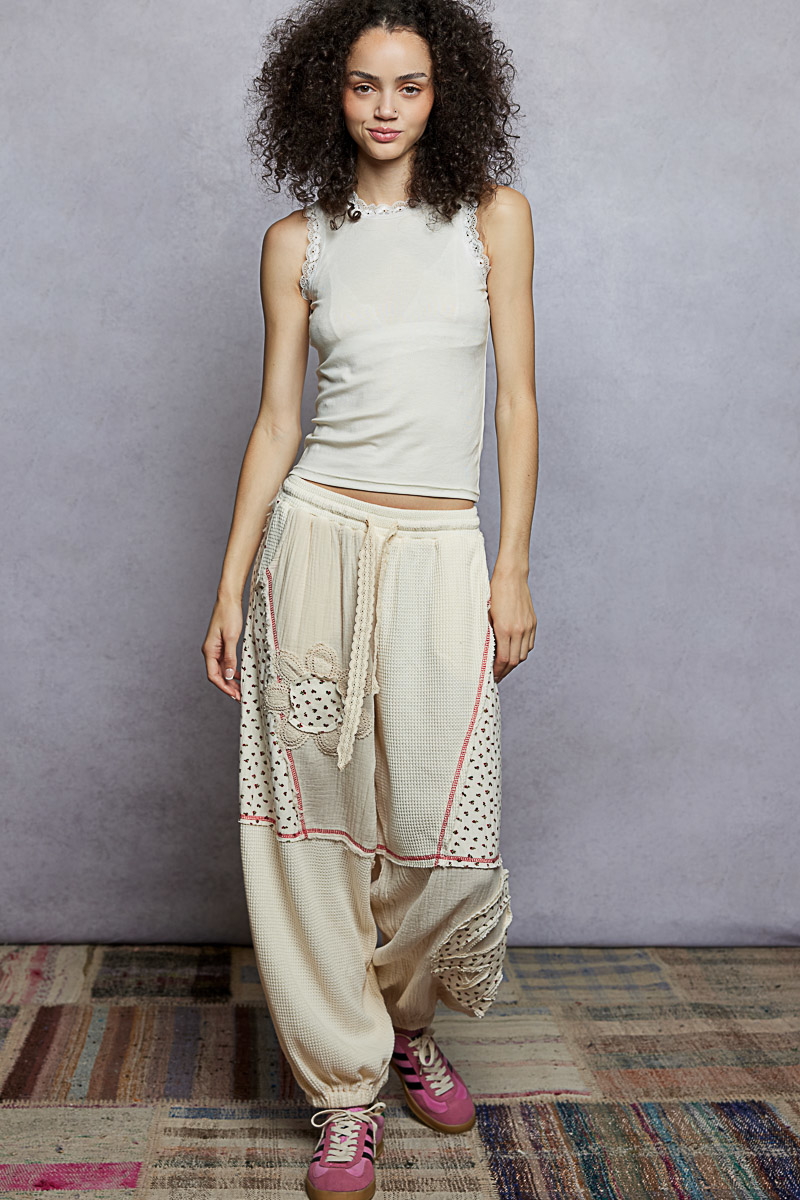 POL Round Neck Cropped Tank with Lace Trim