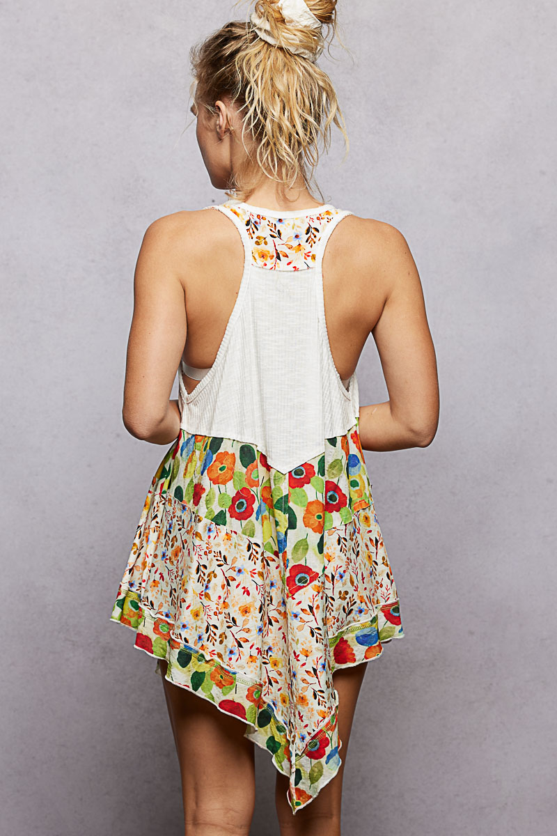POL Round Neck Ribbed Tank with Woven Print Patch