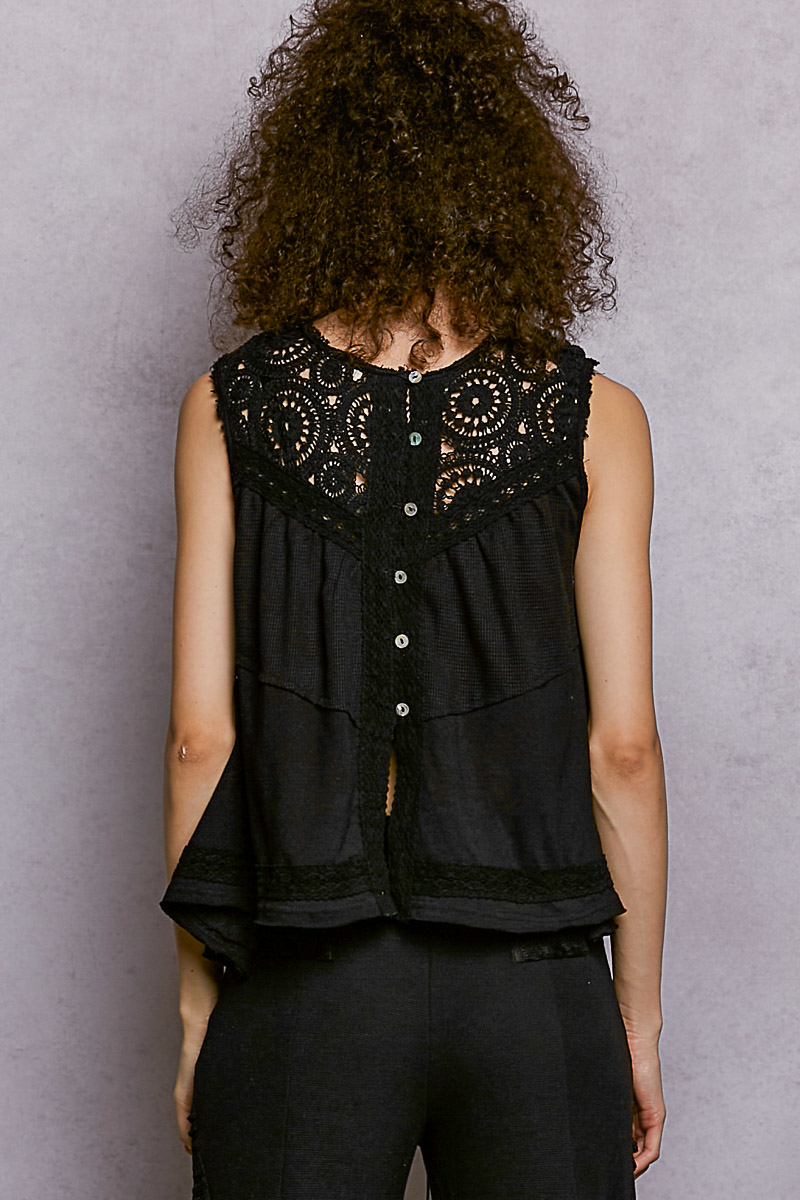 The round neck relaxed fit sleeveless top in thermal with crochet contrast is a stylish and versatile piece that combines comfort with a touch of elegance. The round neckline offers a classic and flattering silhouette, while the relaxed fit provides a comfortable and easy-to-wear style. The thermal fabric adds warmth and texture, perfect for transitioning between seasons. With crochet detailing at the hem or neckline, this top adds a unique and intricate touch to your outfit. Elevate your look with this chic and effortlessly stylish sleeveless top featuring a crochet contrast design!