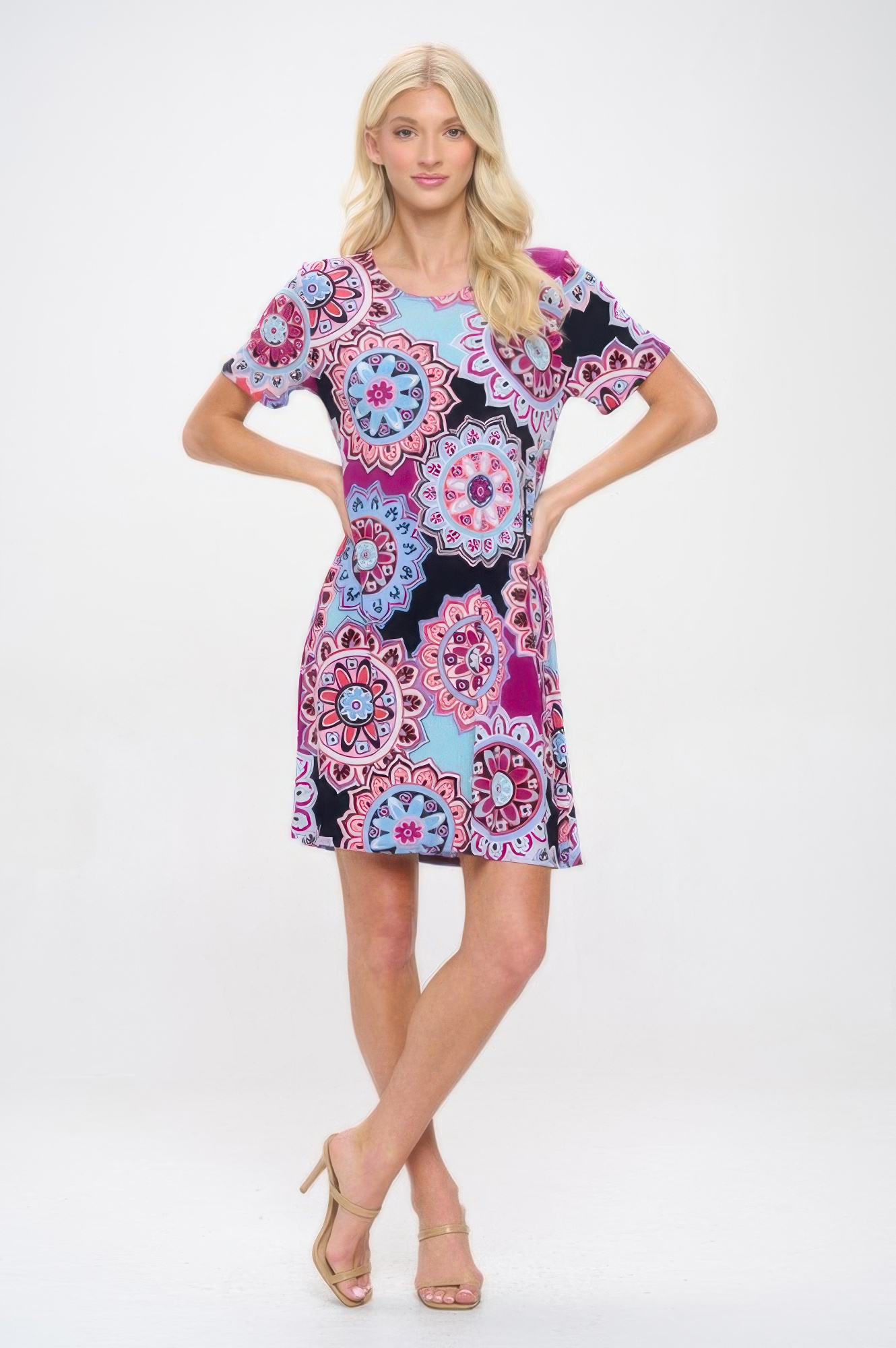 A perfect blend of form and function, this printed Missy dress delivers comfort without compromising on style. The knee-length cut and soft, stretch-enhanced fabric allow for movement while maintaining a polished look. Wrinkle-resistant and easy to wear, it's a reliable option for daily dressing. The one-of-a-kind print pattern ensures every dress stands out. Made in the USA.