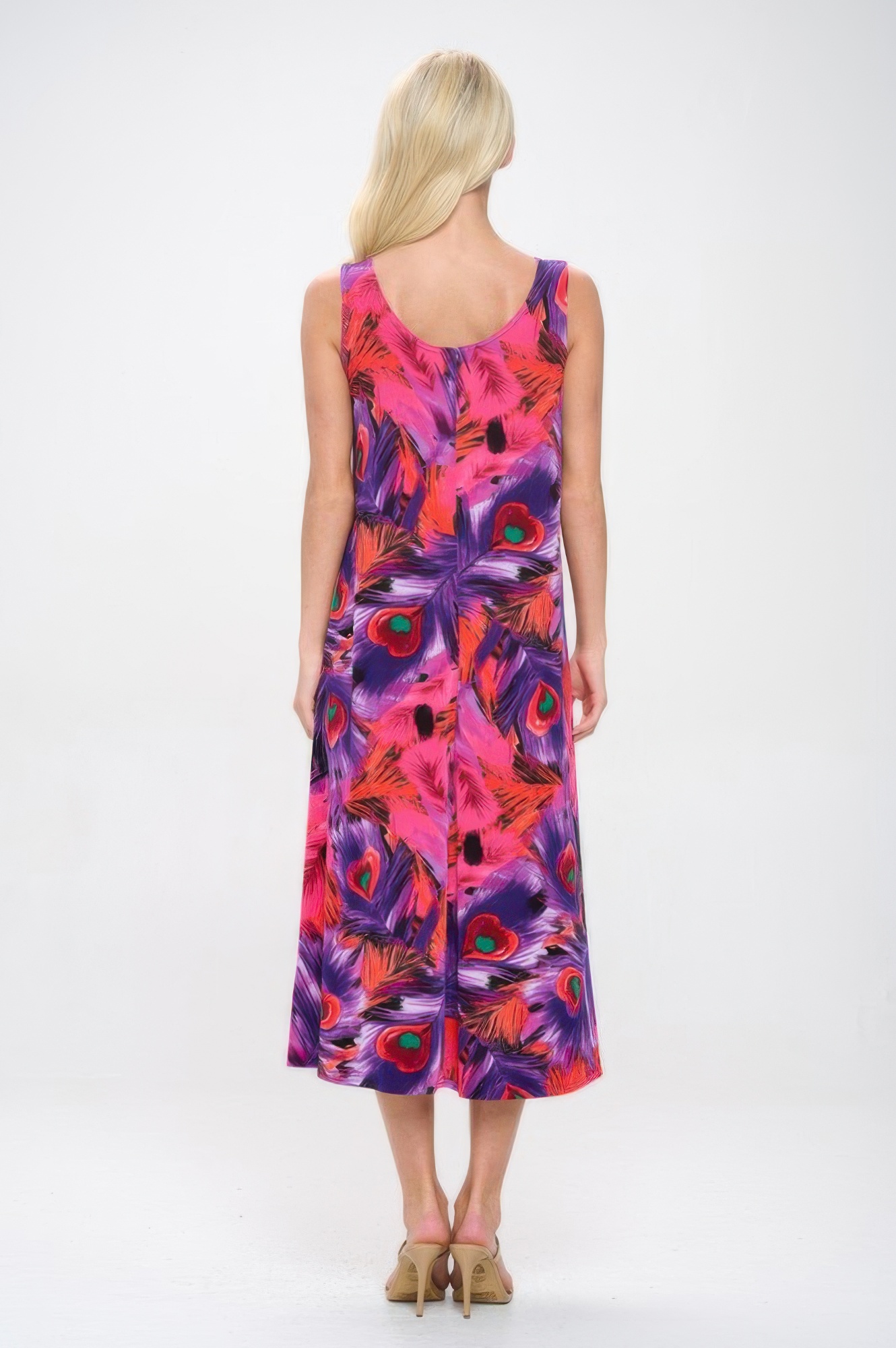 Embrace bold simplicity in the Print BNS Tank Long Dress, an easy-to-wear essential with standout character. The sleeveless design and gently flared hem create a breezy feel perfect for warmer weather. Made with a durable, wrinkle-resistant fabric blend, it’s equally suited for travel, errands, or laid-back evenings out. Every dress features a custom print layout, offering an element of individuality. Designed with comfort in mind, this piece brings color and confidence to your everyday lineup.