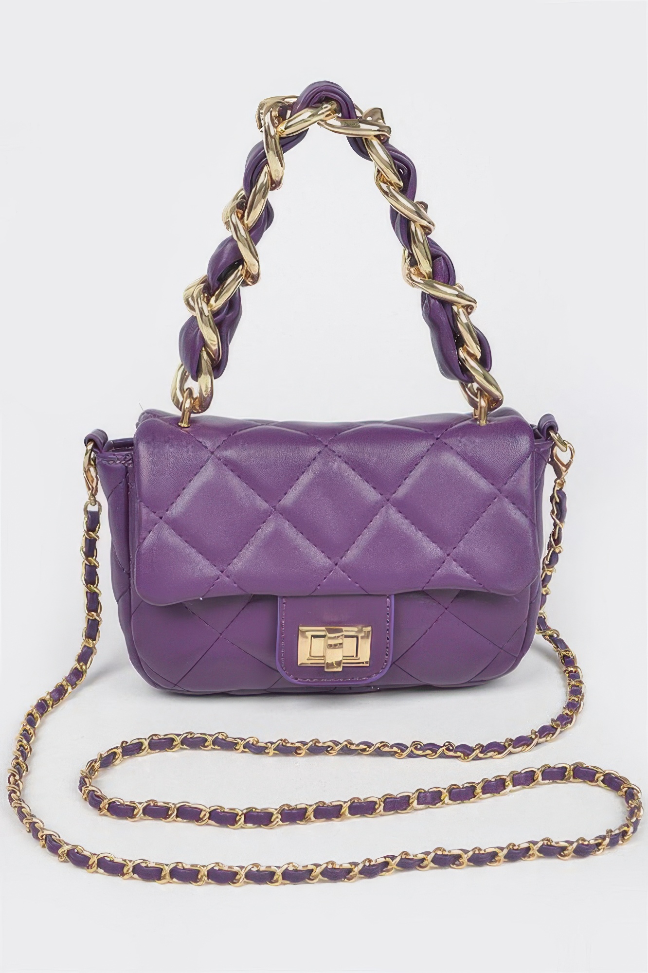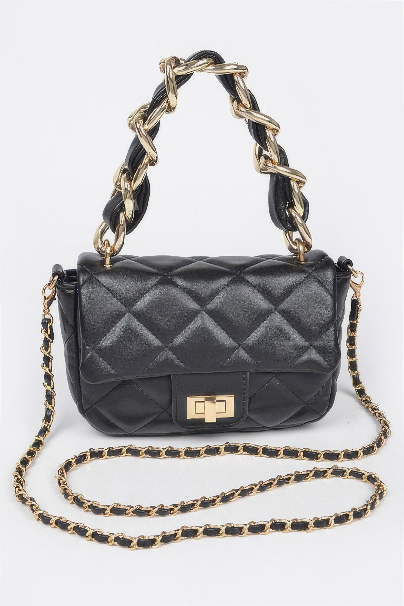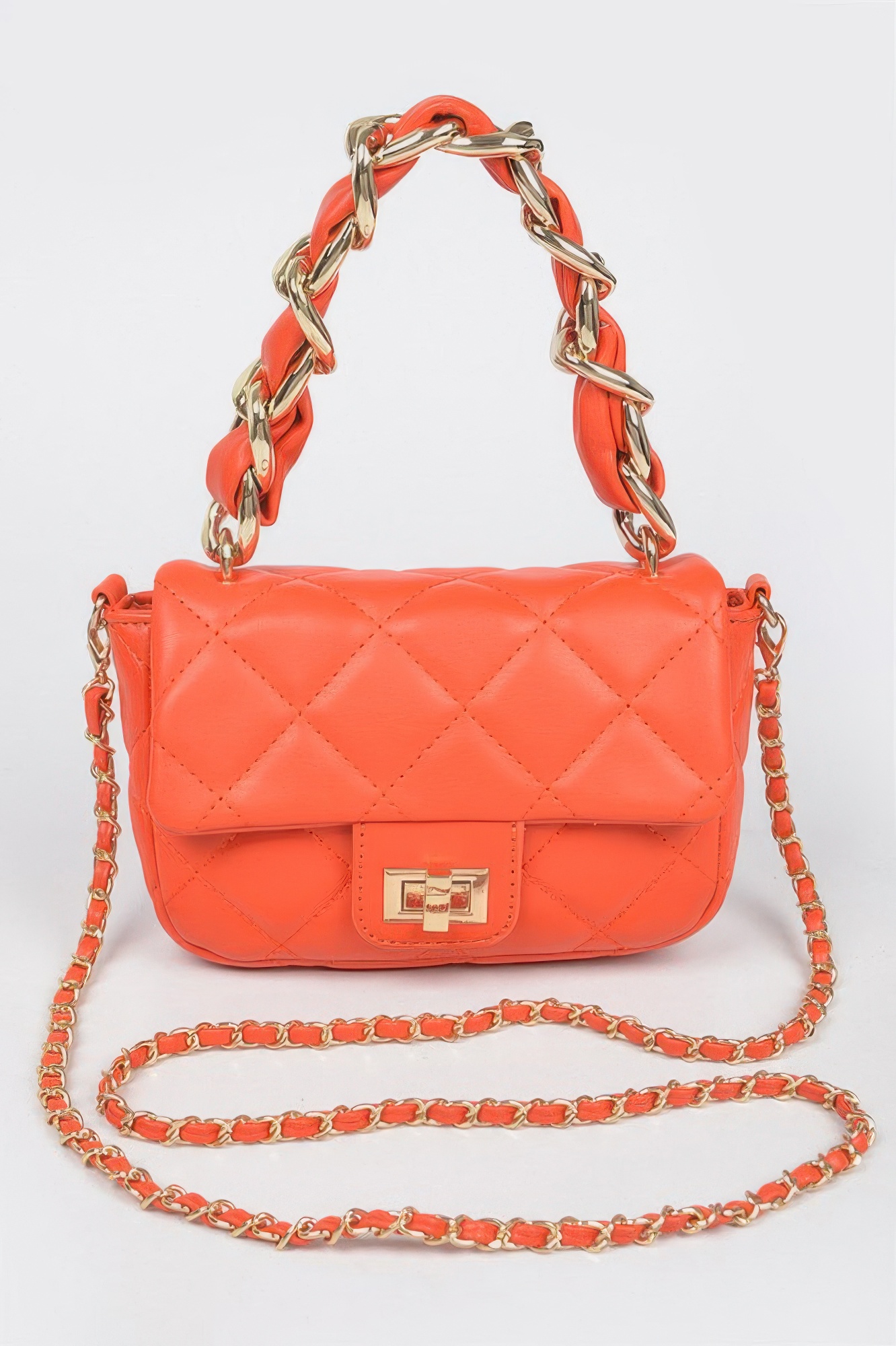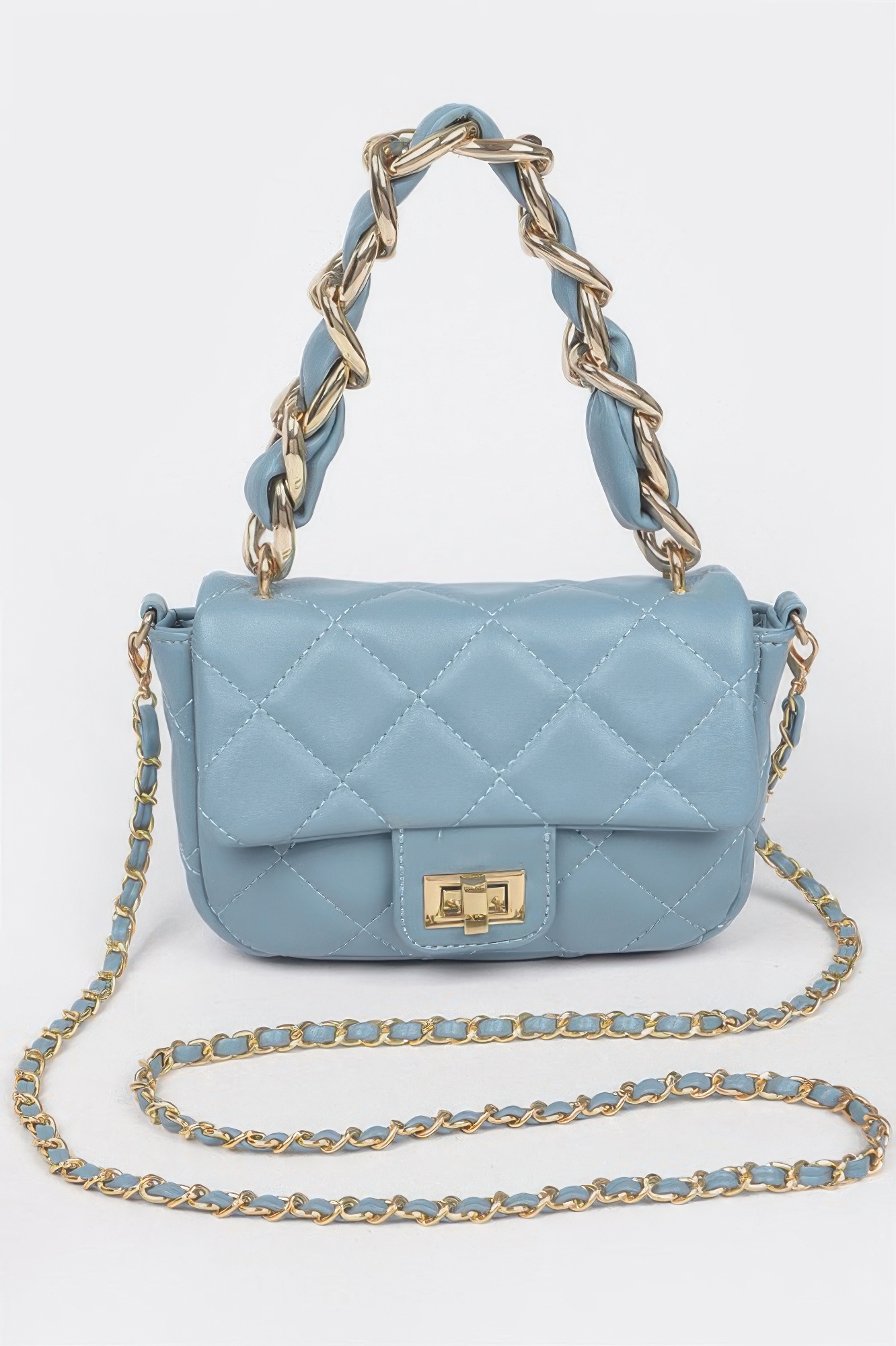 The Quilted Faux Leather Chain Flap Bag offers a stylish blend of classic design and modern functionality. Featuring a quilted faux leather exterior, this bag delivers a sophisticated and textured appearance. The chain strap adds a polished metallic detail while allowing comfortable shoulder or crossbody wear. Its flap closure provides both security and a clean structured look. The compact size makes it perfect for carrying essential items without feeling bulky. The timeless quilted pattern pairs easily with both casual and dressy outfits. With its elegant design and versatile styling, this bag is a must have accessory for everyday fashion.