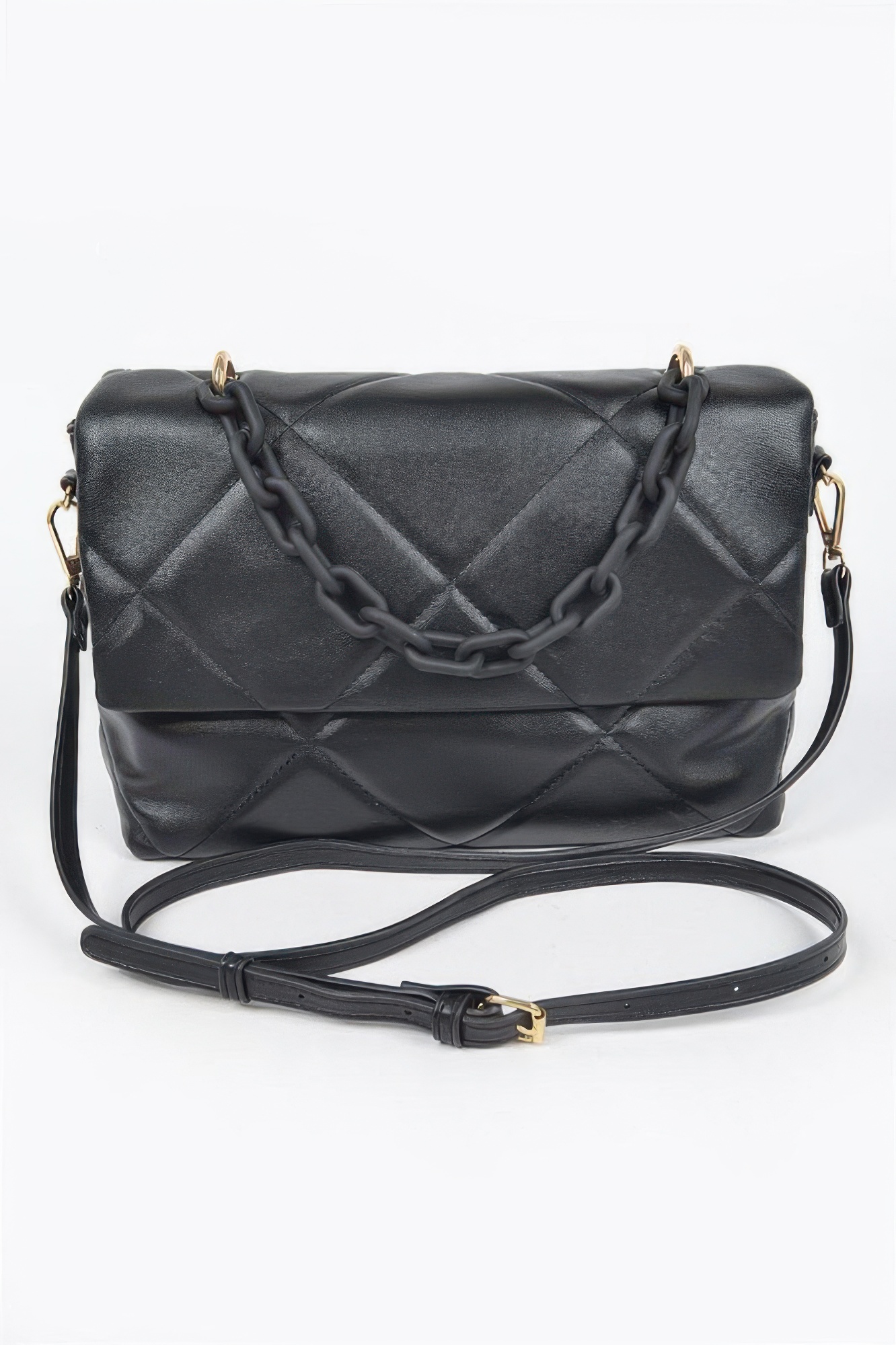 This quilted faux leather color chain bag offers a timeless design with a modern twist. The quilted texture adds depth, while the chain strap introduces a refined edge. Its spacious interior provides room for essentials without compromising style. Designed for versatility, it transitions seamlessly from day to evening wear. A polished accessory, it enhances any outfit with ease.