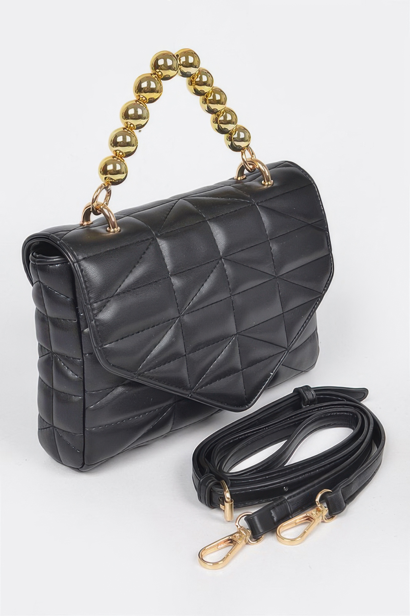 This quilted faux leather flap ball chain bag combines classic texture with modern detailing. The quilted exterior adds depth, while the ball chain strap introduces a contemporary edge. Its compact size makes it perfect for carrying essentials without sacrificing style. The flap closure provides a clean and secure finish. A versatile accessory, it transitions seamlessly from day to night.