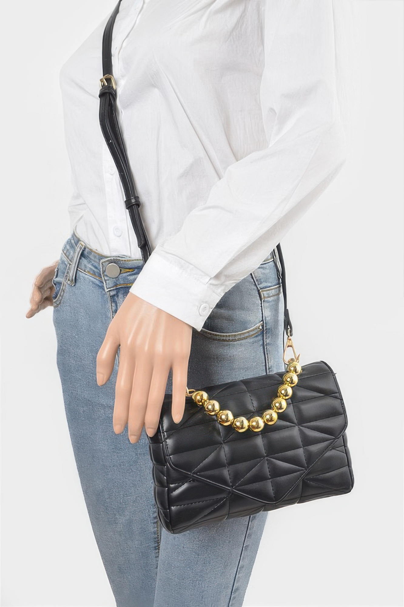 - Ball chain strap detail