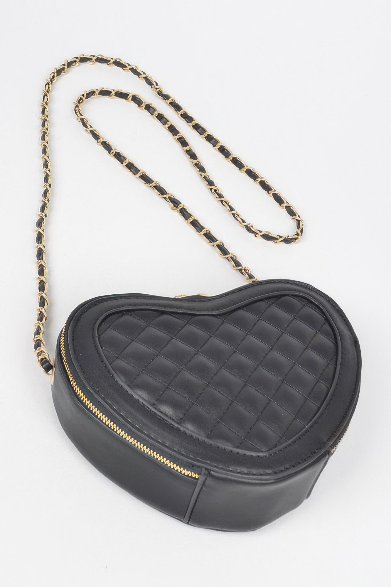 Make a playful yet polished statement with this quilted heart shape crossbody bag. Measuring approximately 7W x 6.25H x 2D inches, its structured silhouette offers compact convenience with standout charm. The quilted texture adds dimension and softness, while mixed metal hardware enhances its modern finish. Crafted from polyurethane, it delivers durability with a smooth, refined feel. Perfect for day outings or evening plans, this bag blends romance and practicality effortlessly.