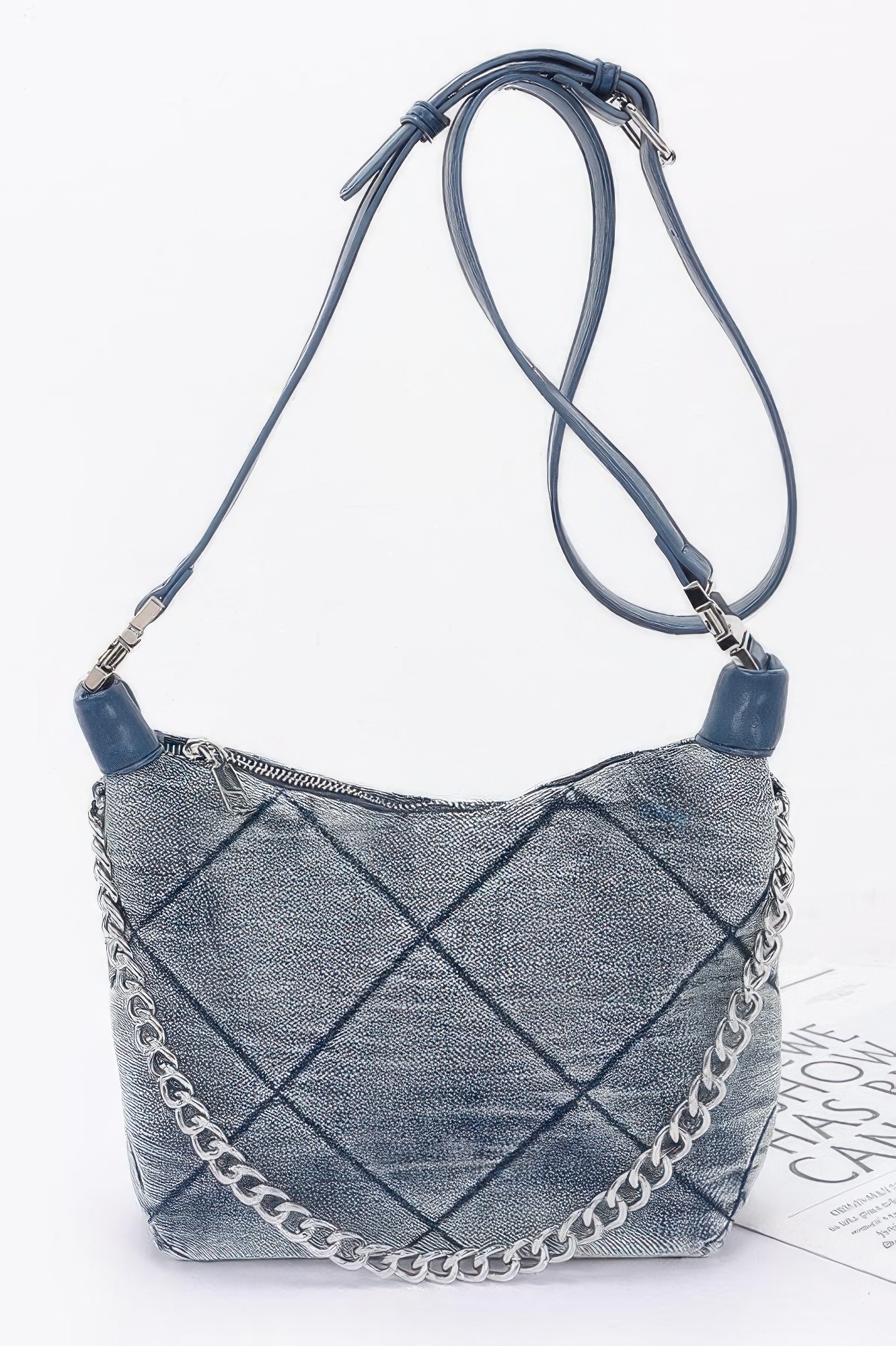 The Quilted Washed Denim Shoulder Chain Crossbody Bag combines modern style with everyday practicality. Designed with a quilted washed denim texture, this stylish bag offers a unique blend of casual charm and polished detail. The chain strap adds a contemporary accent while allowing for comfortable shoulder or crossbody wear. Its compact structure provides enough space for daily essentials, making it the perfect accessory for day outings, casual events, or evening plans. With its fashionable design and versatile functionality, this bag effortlessly elevates any look.
