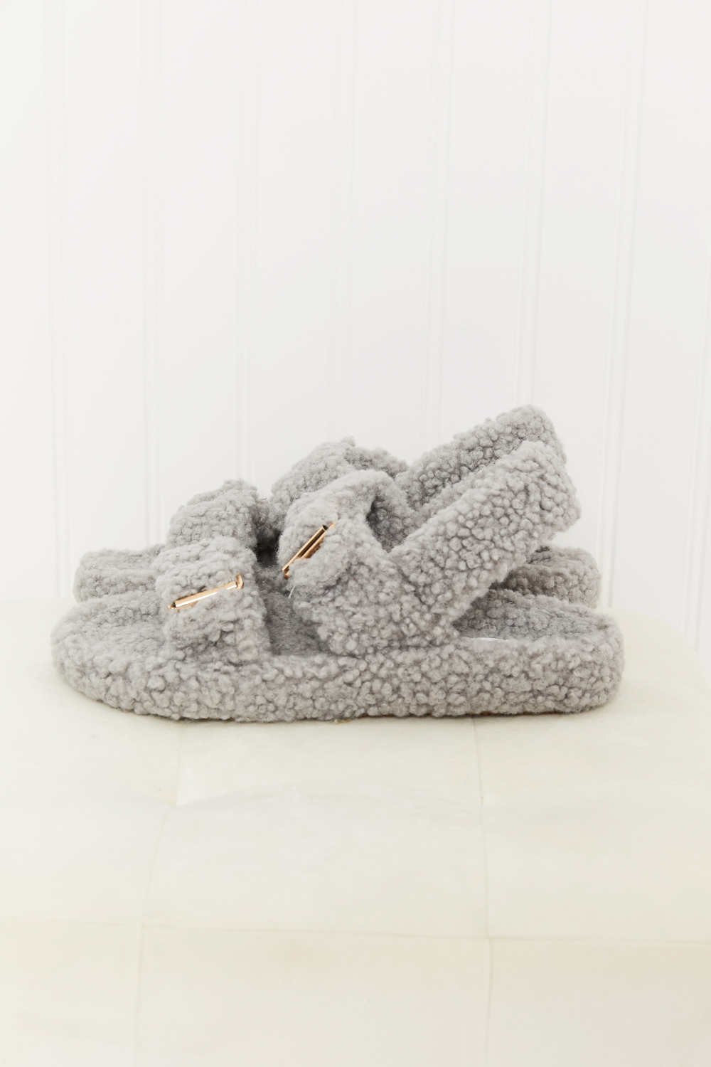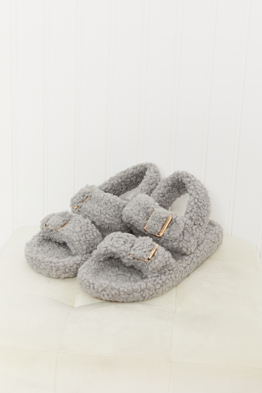 These faux fur sandals are perfect for casual wear. The open-toe design and buckles on the front make this shoe easy to slip on and off. Plus, they're so adorable!