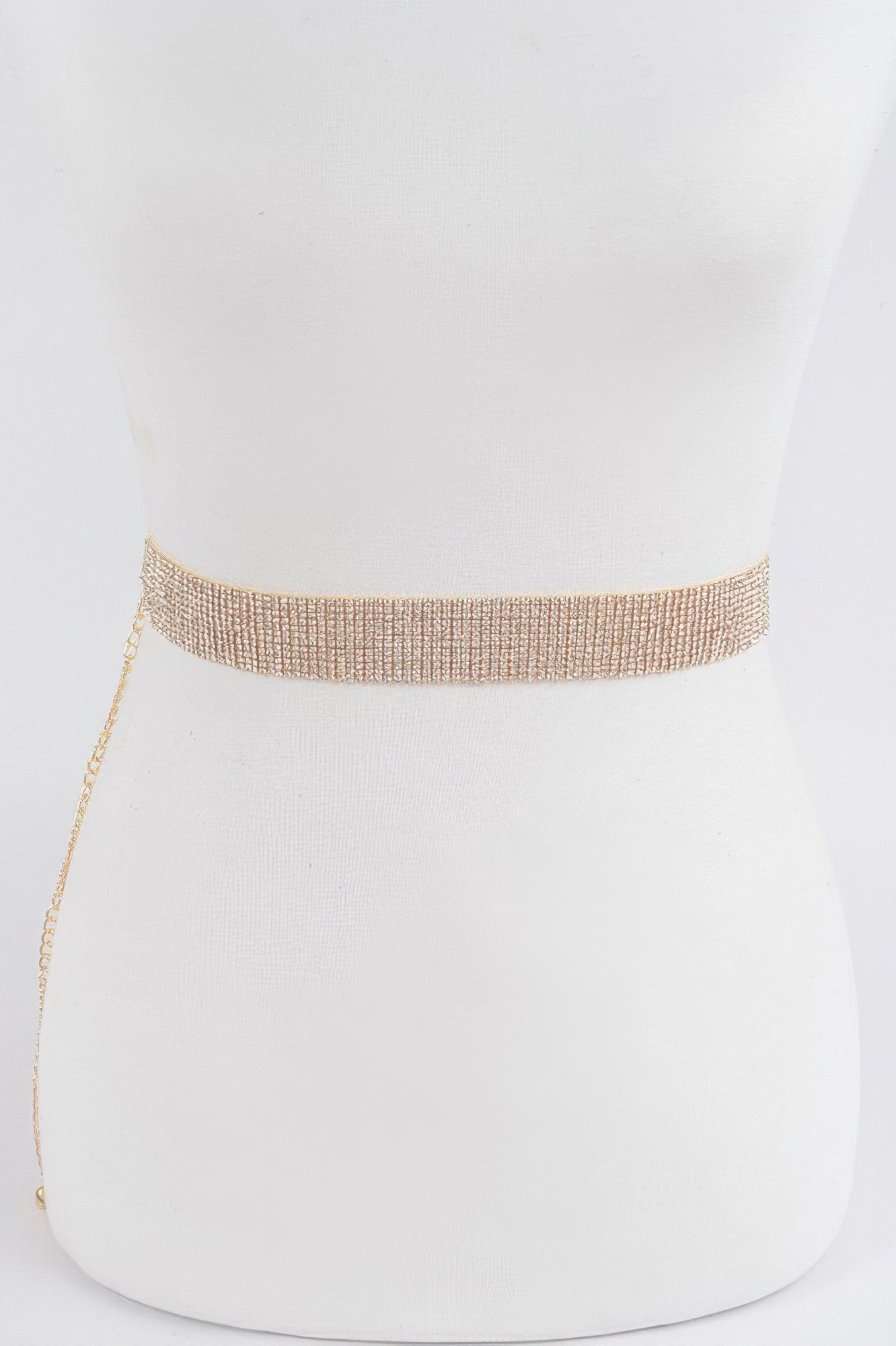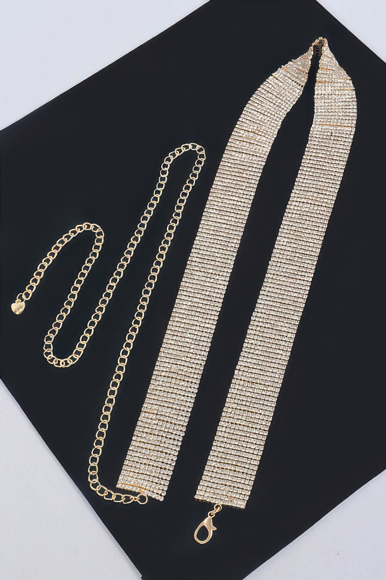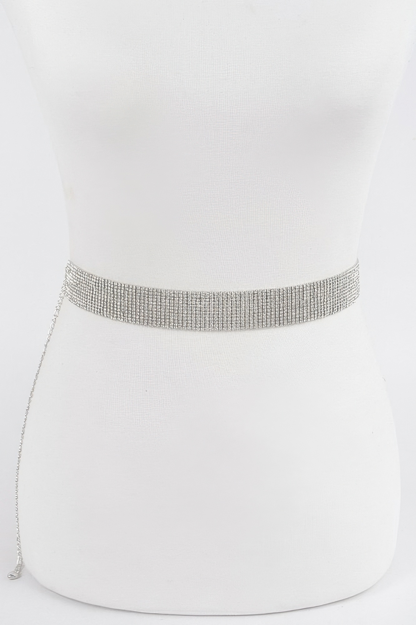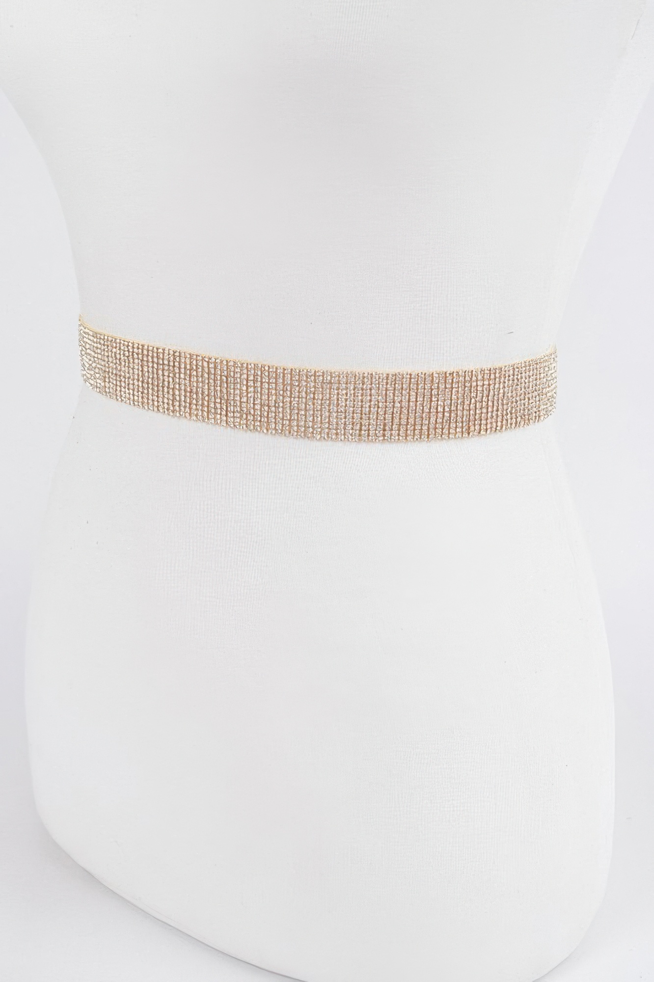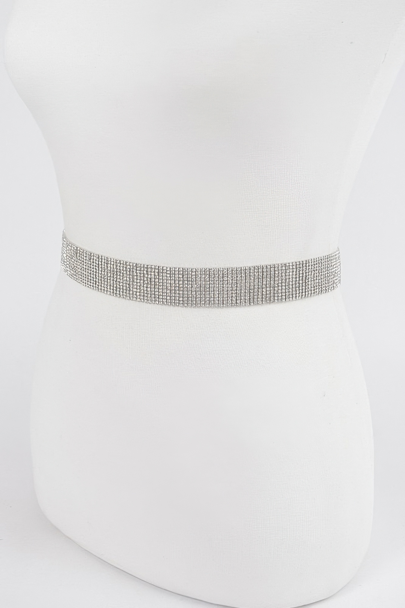 This rhinestone belt brings a touch of sparkle to any outfit with its sleek and refined design. The shimmering surface catches the light beautifully, making it ideal for both day and evening wear. Its slim profile allows for easy styling without overwhelming your look. Designed to enhance the waist, it adds a polished and elegant finish. A versatile accessory, it elevates any ensemble effortlessly.