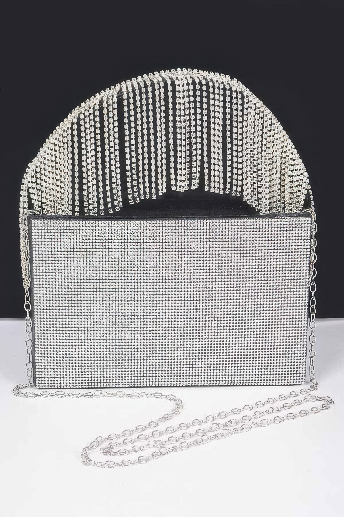 This rhinestone box clutch delivers bold glamour with a structured, elegant shape. Covered in shimmering rhinestones, it catches the light beautifully with every movement. The box silhouette provides a clean and polished finish. A rhinestone fringe handle adds dramatic flair and unique detailing. Designed to hold essentials while maintaining a sleek profile, it is ideal for evening events. The sturdy construction ensures durability without sacrificing style. This clutch is a statement piece crafted for standout moments.