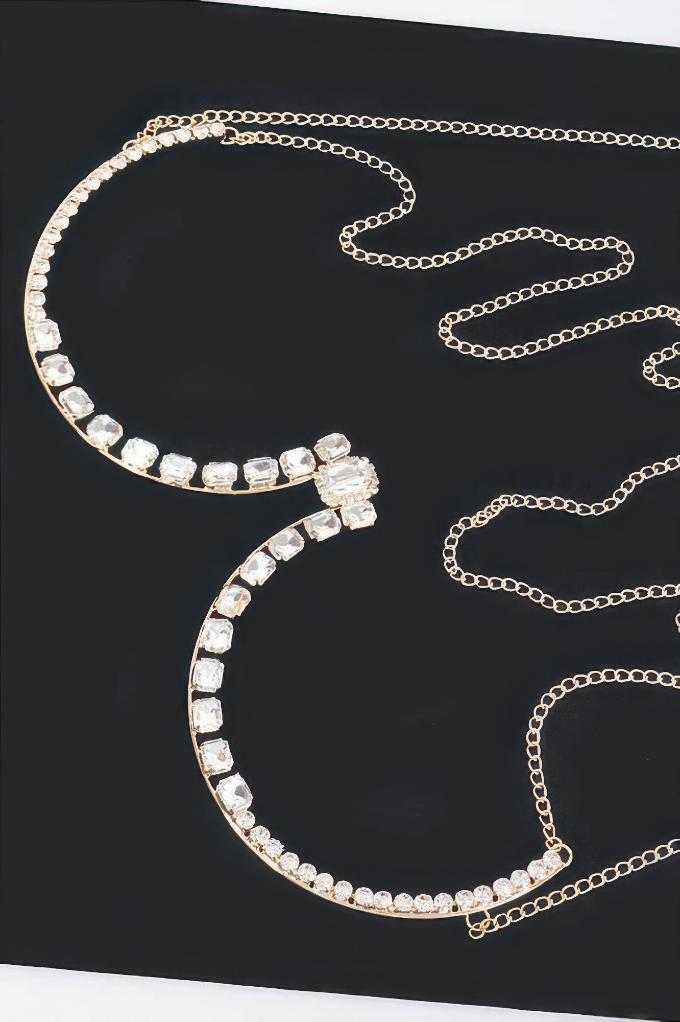 The Rhinestone Bra Chain delivers radiant glamour with a sleek, body-contouring silhouette. Designed with cascading rhinestone strands, it creates a luminous layered effect that enhances fitted tops and statement looks. The shimmering finish catches the light beautifully, adding instant drama and dimension. Lightweight and flexible, it offers comfortable wear while maintaining standout appeal. Perfect for special occasions, nightlife styling, and bold fashion moments.