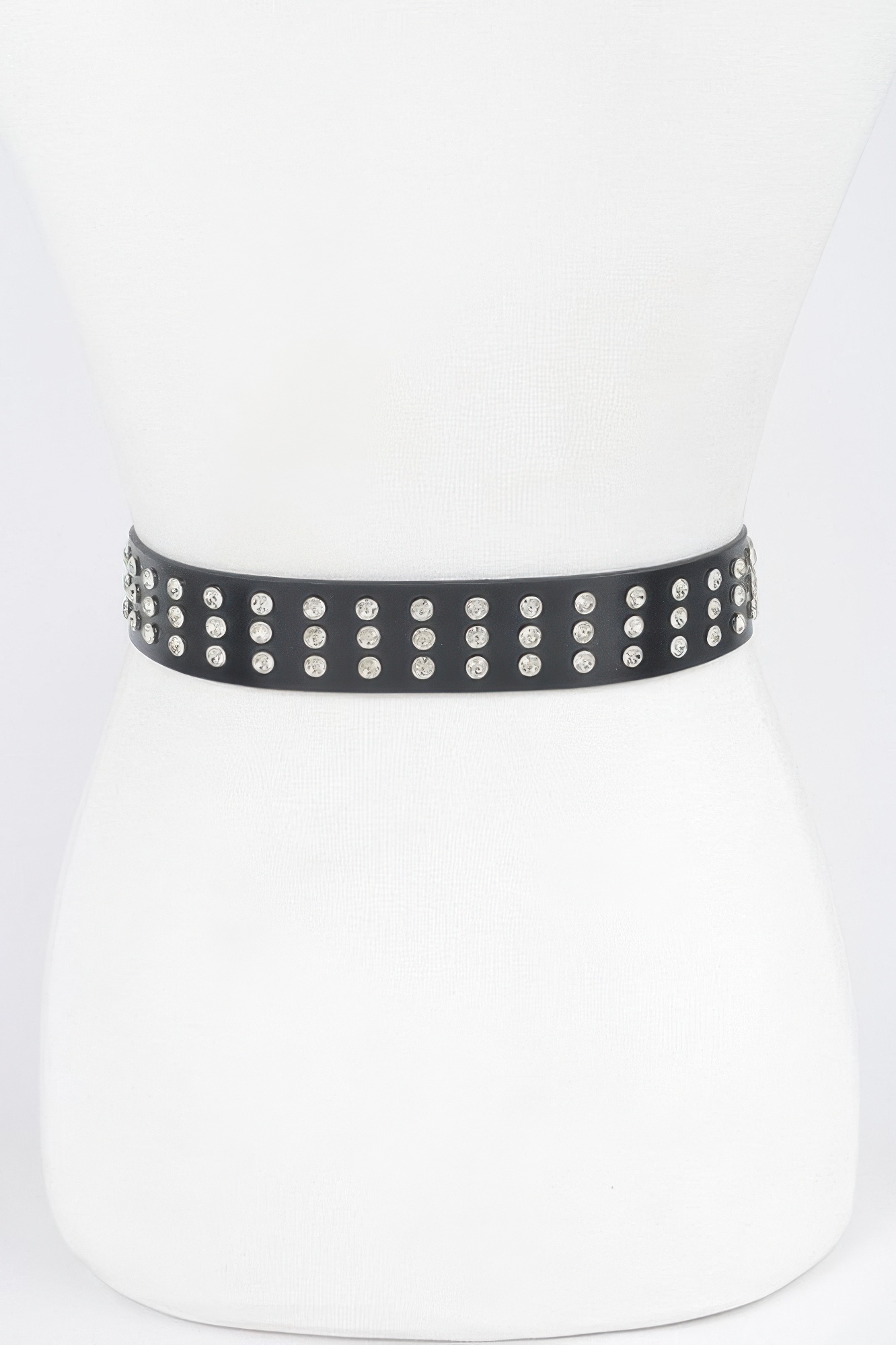 Metallic belt with rhinestone buckle
