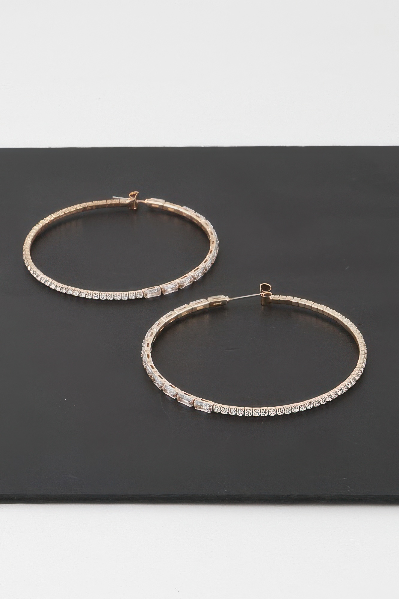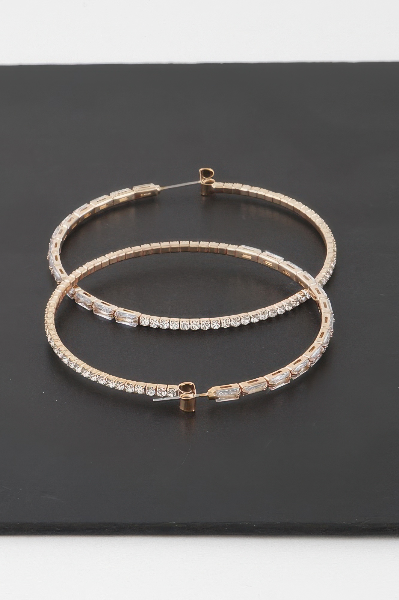 - Hoop design with rhinestone crystal accents