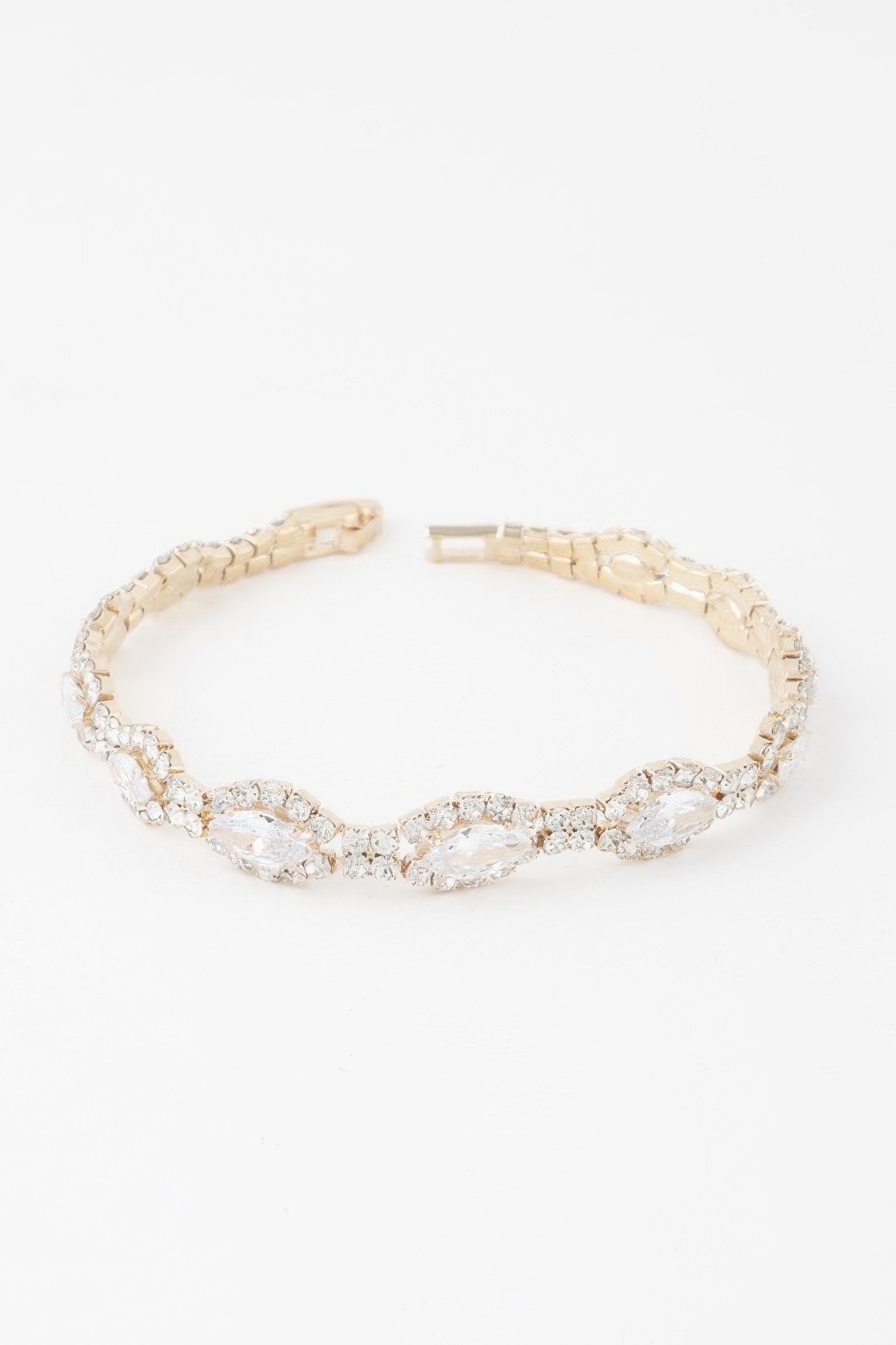 The Rhinestone Curb Chain Cuff Bracelet combines edgy design with sparkling detail. Featuring a sturdy curb-link structure accented with shimmering rhinestones, this cuff delivers statement-making style. Perfect for adding glamour to an evening outfit or boldness to everyday wear, it’s a standout addition to your jewelry rotation.