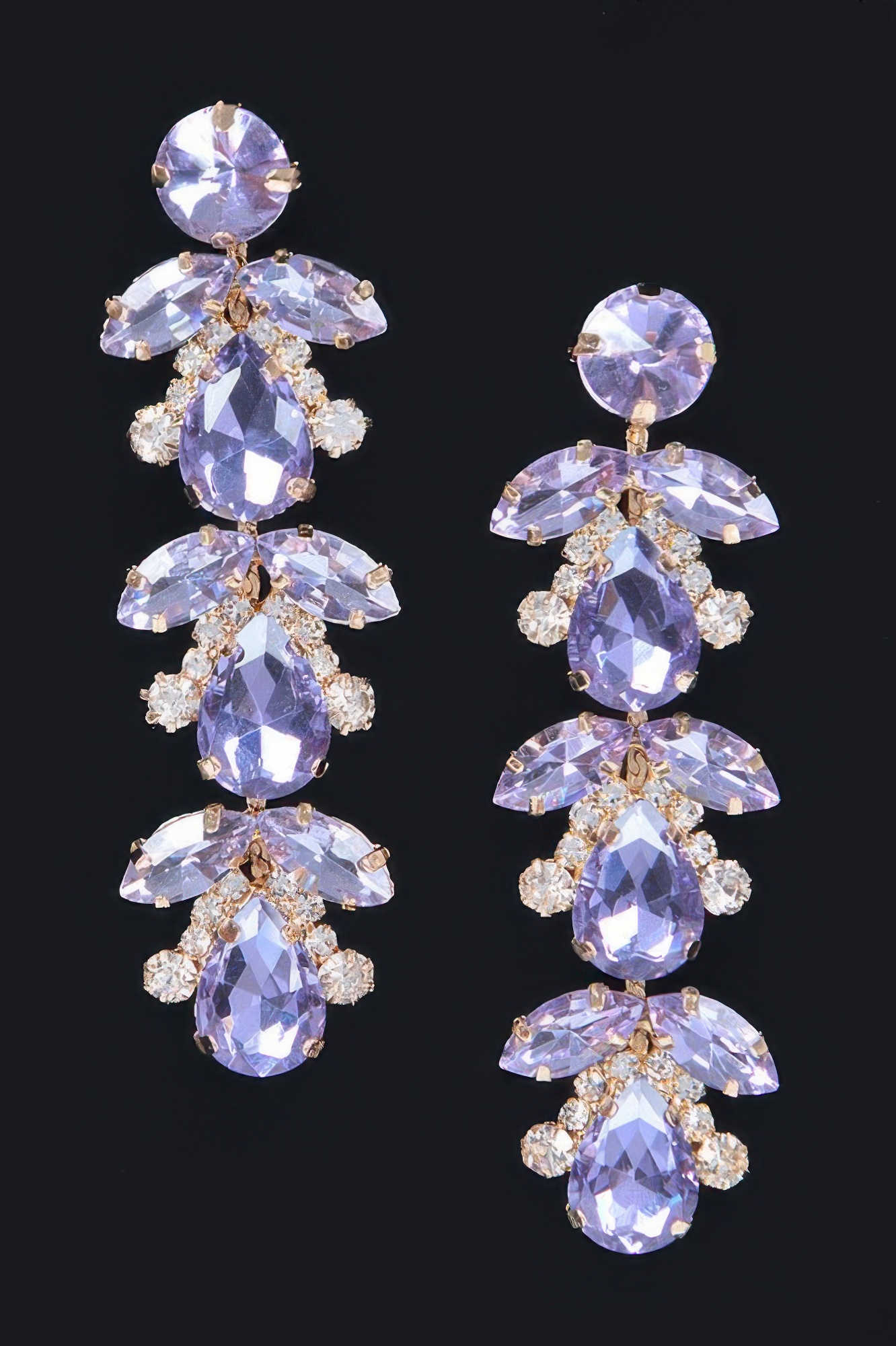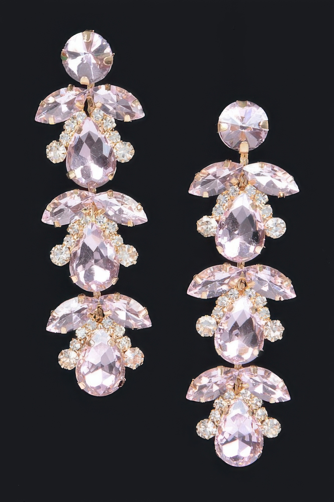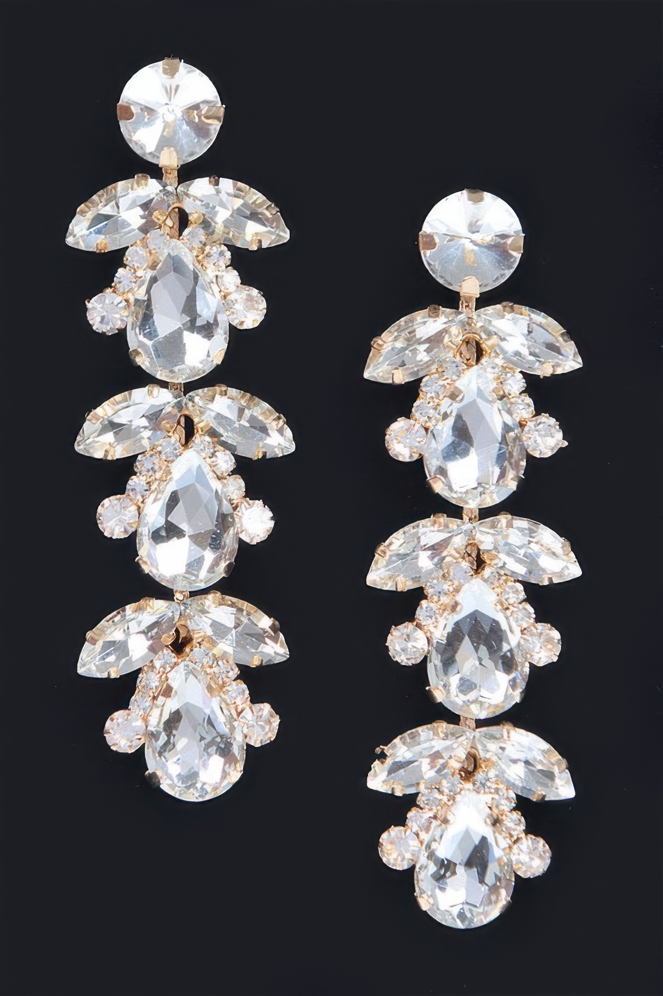 Add dramatic length and sparkle to your accessory collection with these rhinestone drop earrings. Measuring approximately 0.75 x 2.75 inches, the extended silhouette creates elegant movement with every step. The radiant rhinestone detailing catches the light from every angle, making them perfect for special occasions. Their refined shape enhances both sleek updos and loose waves. Designed for impact yet easy wear, these earrings balance glamour and comfort seamlessly.