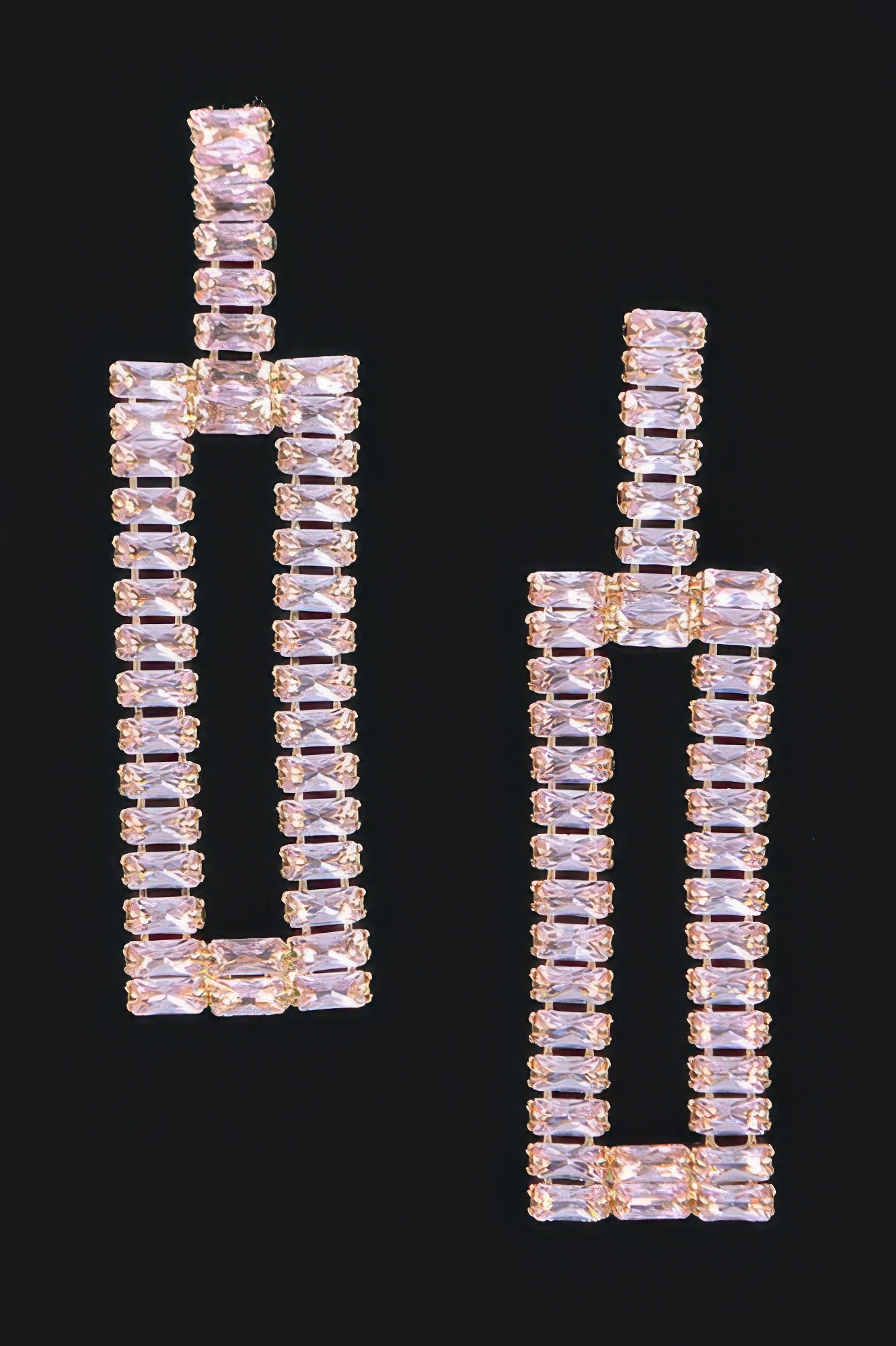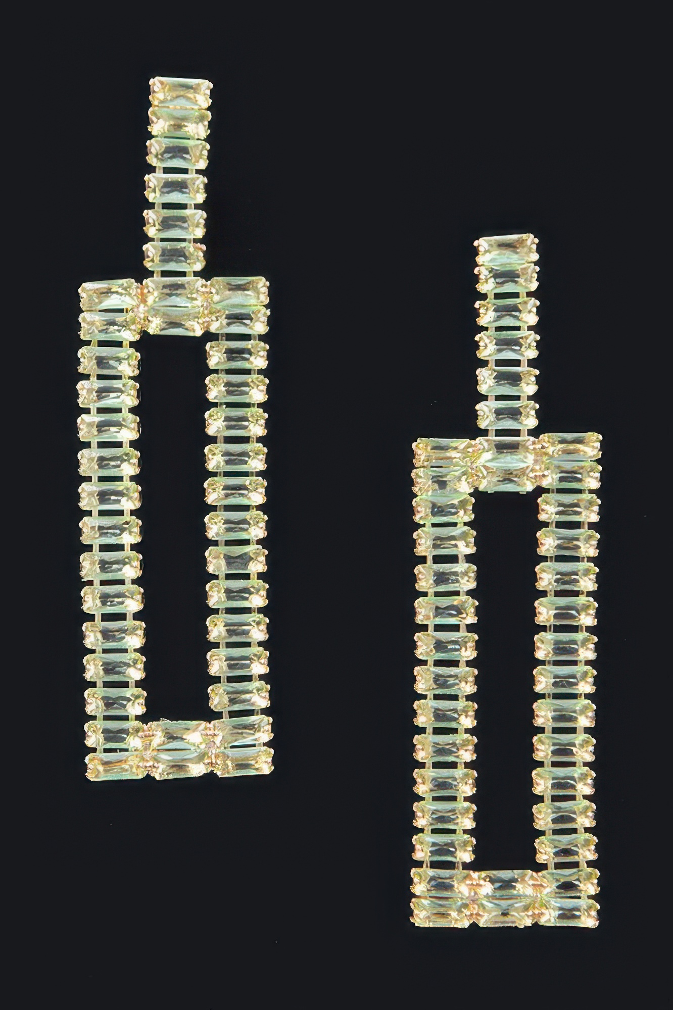 Make a confident statement with these wider rhinestone earrings designed for standout shine. Measuring approximately 1.65 x 2.25 inches, the broader silhouette adds dimension and bold presence. Brilliant rhinestones enhance the structured shape, creating a glamorous yet balanced look. Perfect for pairing with sleek eveningwear or contemporary separates, they instantly elevate your ensemble. Comfortable enough for extended wear, they combine impact with ease.