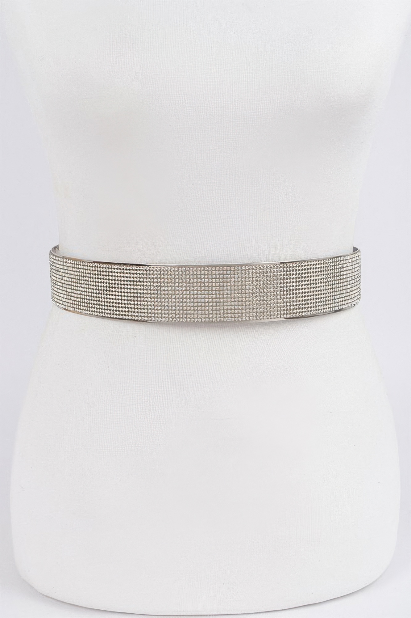 This rhinestone metal waist belt features a sleek metal design accented with shimmering rhinestones for a refined and elegant look. The structured silhouette enhances the waistline while adding a polished finish. Its adjustable length allows for a secure and flexible fit. Lightweight yet eye-catching, it is ideal for special occasions. A standout accessory, it adds sparkle and sophistication to any outfit.