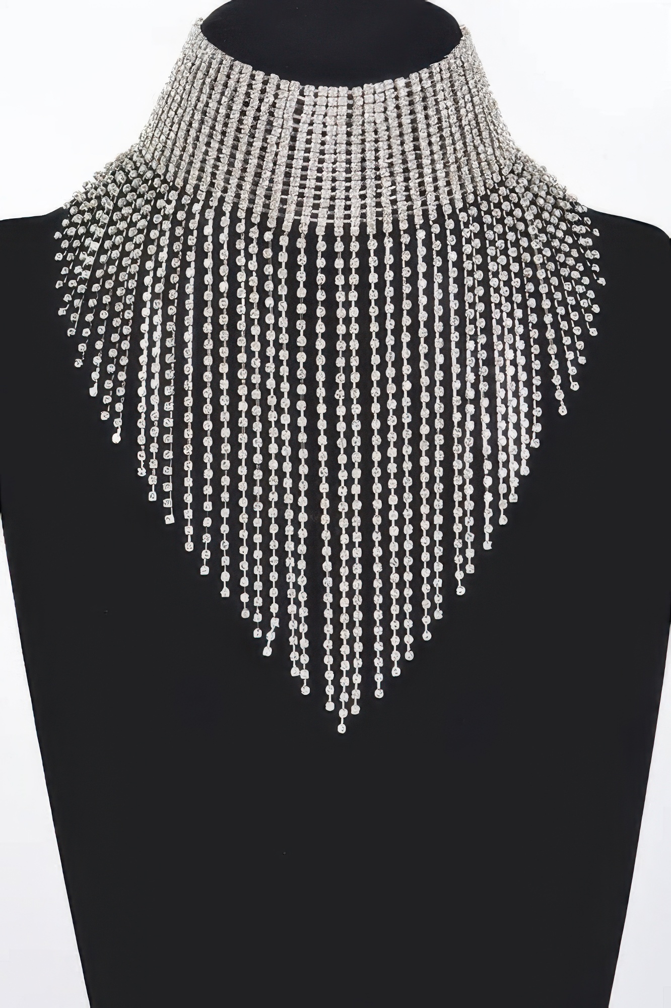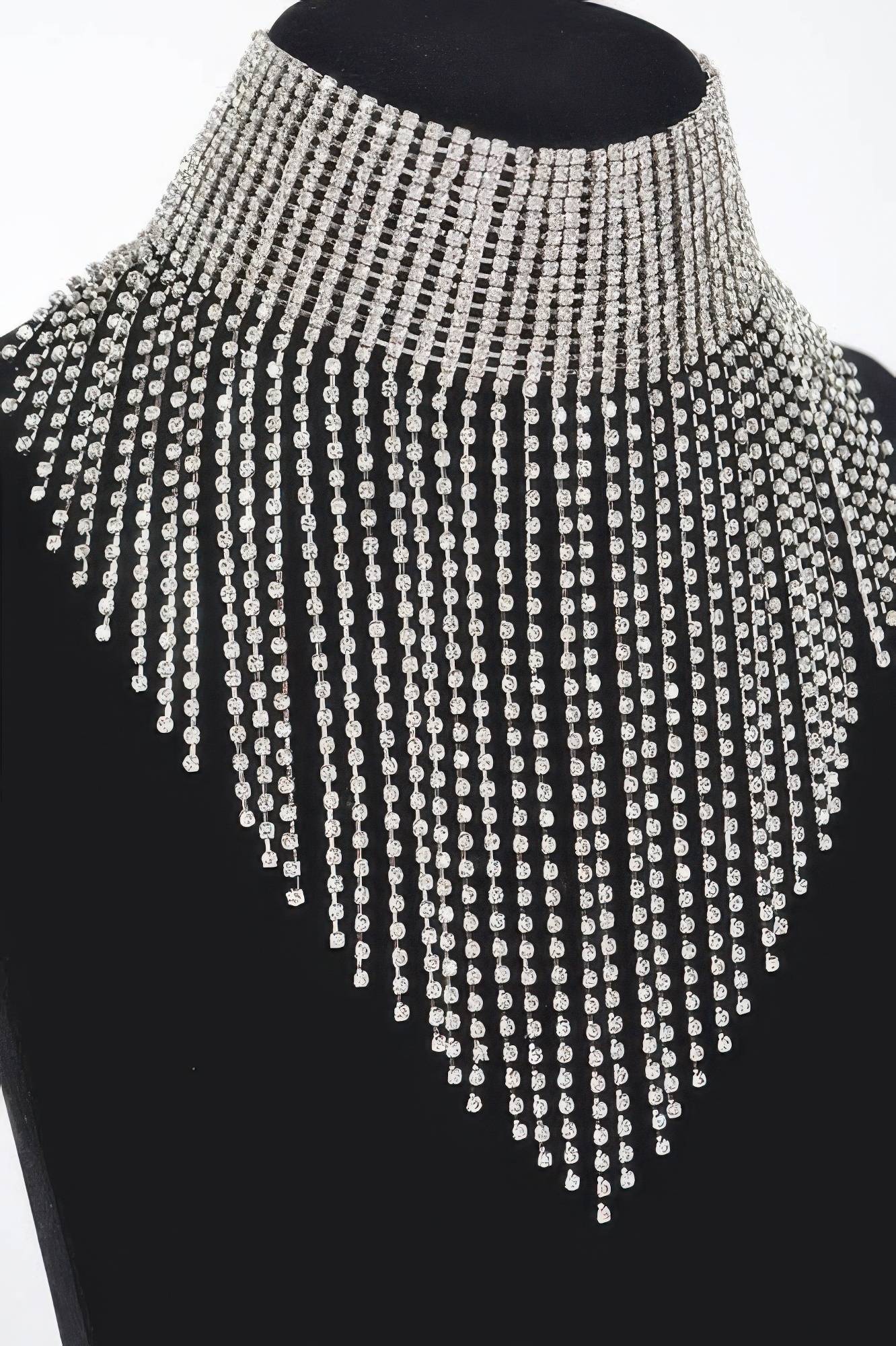 Sleek and refined, this 14-inch rhinestone necklace offers a close-fitting silhouette with radiant shine. Designed to sit higher along the neckline, it creates a polished, modern finish. The sparkling stones provide understated glamour suitable for layering or minimalist wear. A versatile essential for elevating any ensemble.