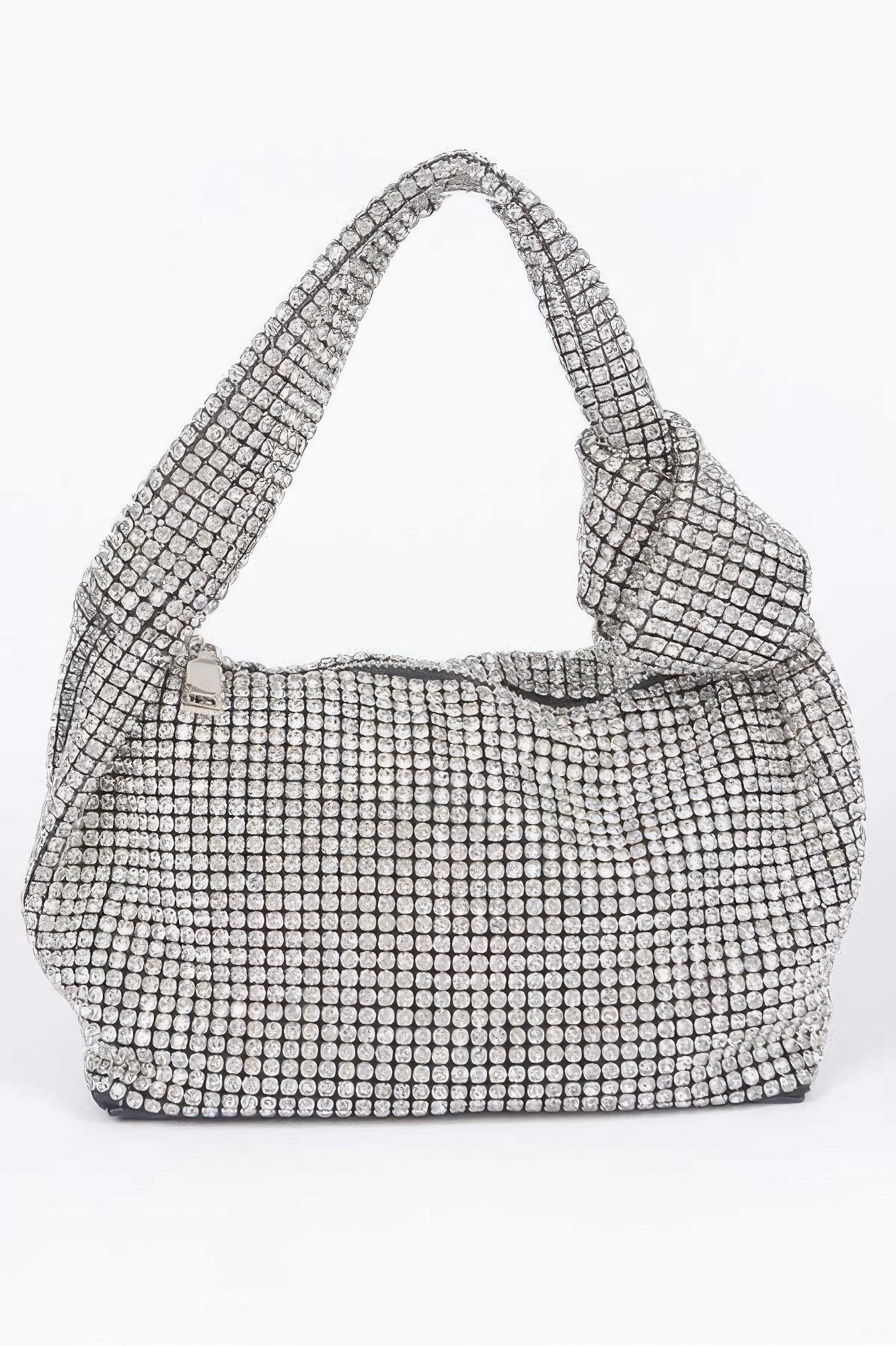 Sleek and sparkly, the Rhinestone Shoulder Zip Bag adds instant glamour to your wardrobe. Covered in radiant rhinestones, this compact shoulder bag features a practical zip closure and a structured silhouette. It’s ideal for both nights out and elevated daytime looks, offering just the right amount of shine.