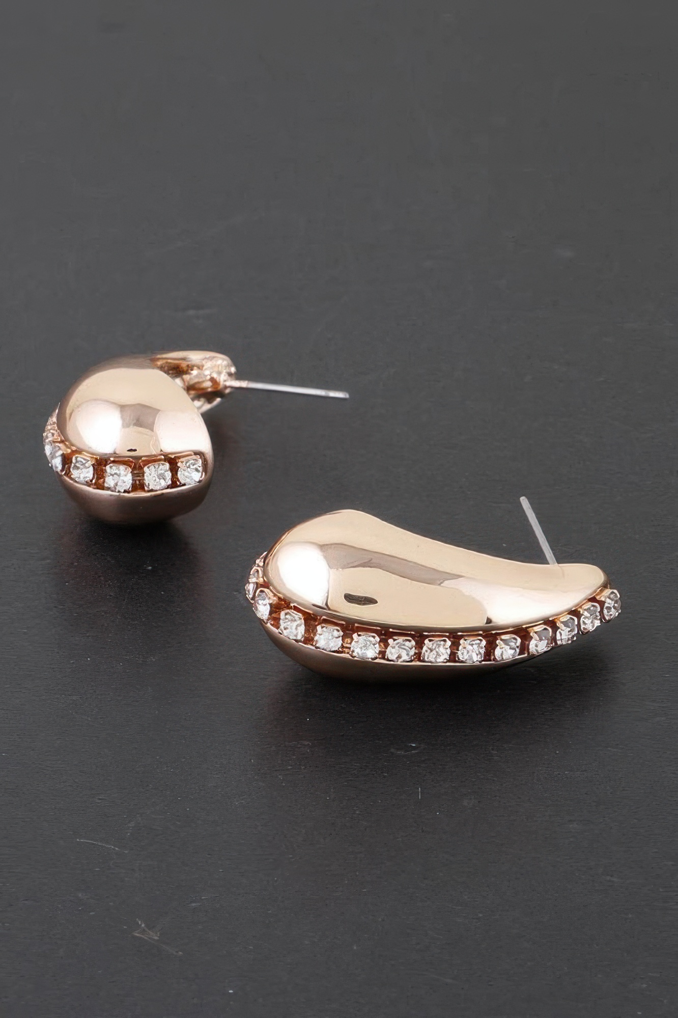 Make a glamorous statement with the Rhinestone Tear Drop Earrings. Crafted in a sleek teardrop silhouette and encrusted with shimmering rhinestones, these earrings are designed to catch the light with every movement. Perfect for evening events or special occasions, they bring sparkle and sophistication to any outfit.