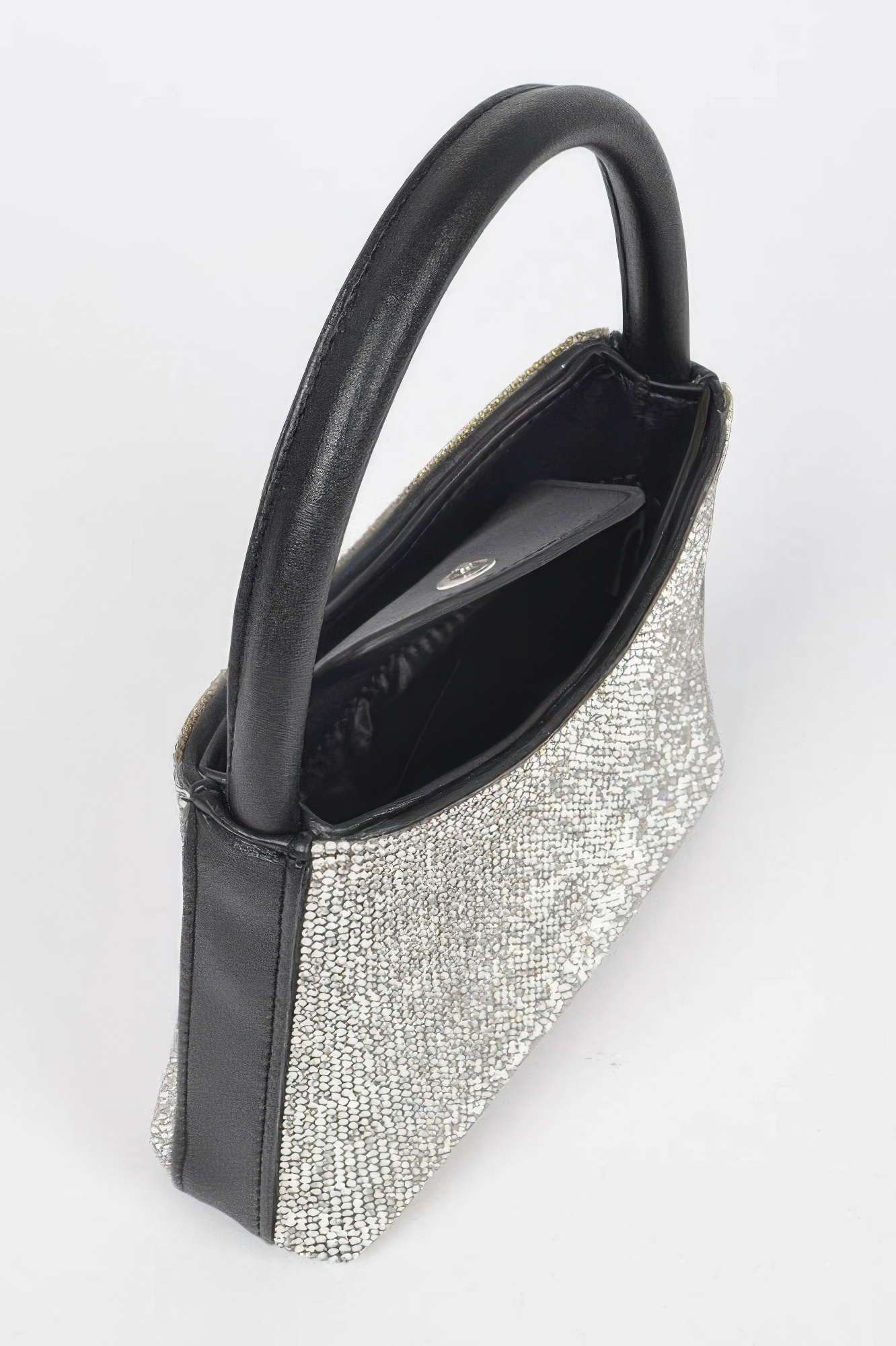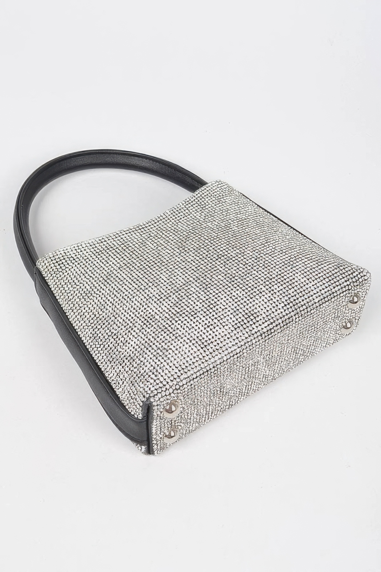 This rhinestone top handle bag offers a sparkling finish with a structured silhouette. The rhinestone exterior catches the light beautifully, making it ideal for special occasions. Its compact yet functional size allows you to carry essentials with ease. Designed with a top handle, it provides a refined and polished look. A statement accessory, it elevates any outfit with elegance.