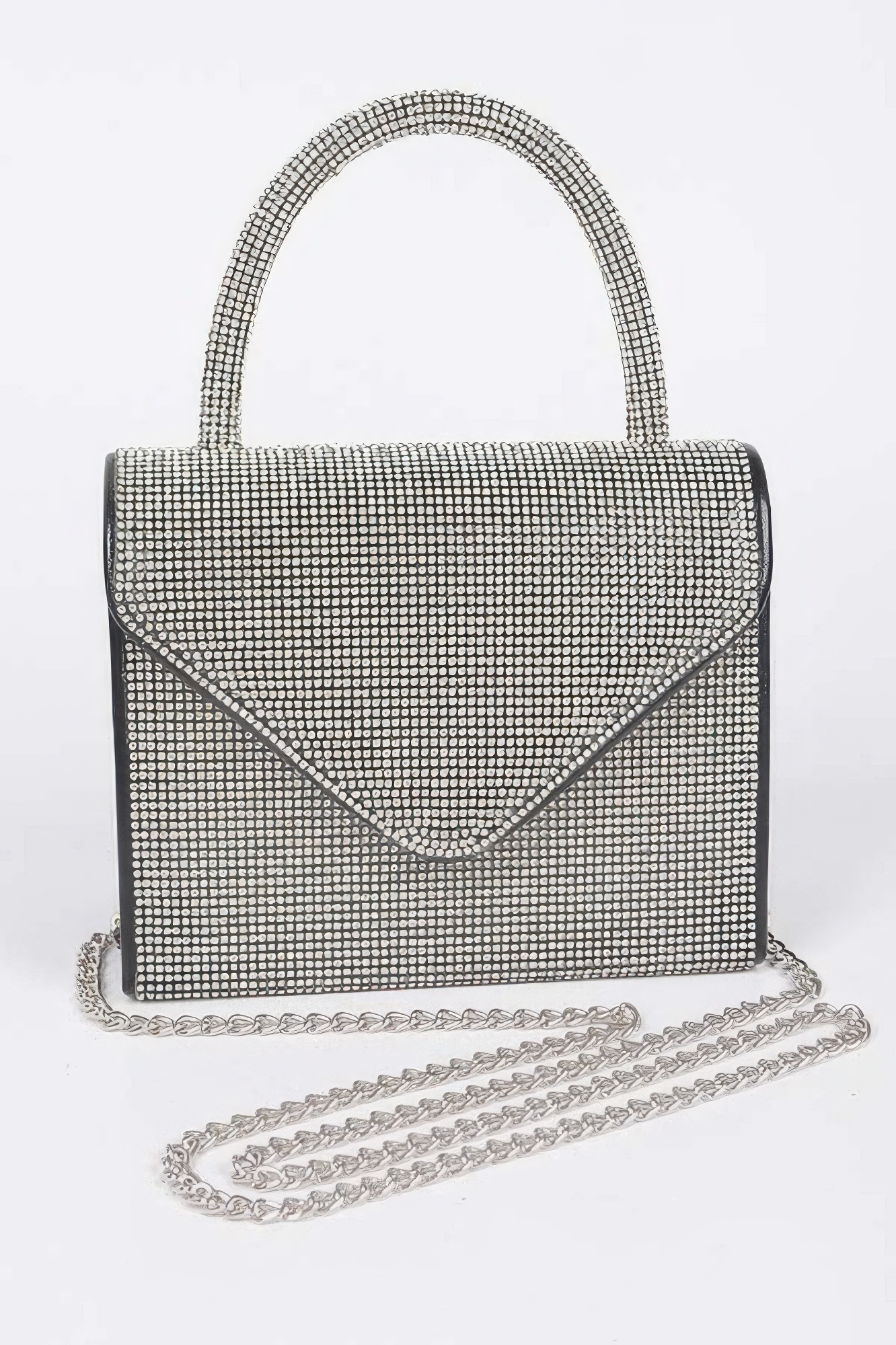 The Rhinestone Top Handle Crossbody Bag is a standout piece, shimmering with luxe rhinestones and finished with sleek hardware. Designed with both elegance and function in mind, it features a structured body, a compact interior, and a polished top handle for elevated styling. A detachable crossbody strap allows for hands-free wear. Ideal for formal occasions, weddings, or festive evenings, it’s your go-to sparkle bag.