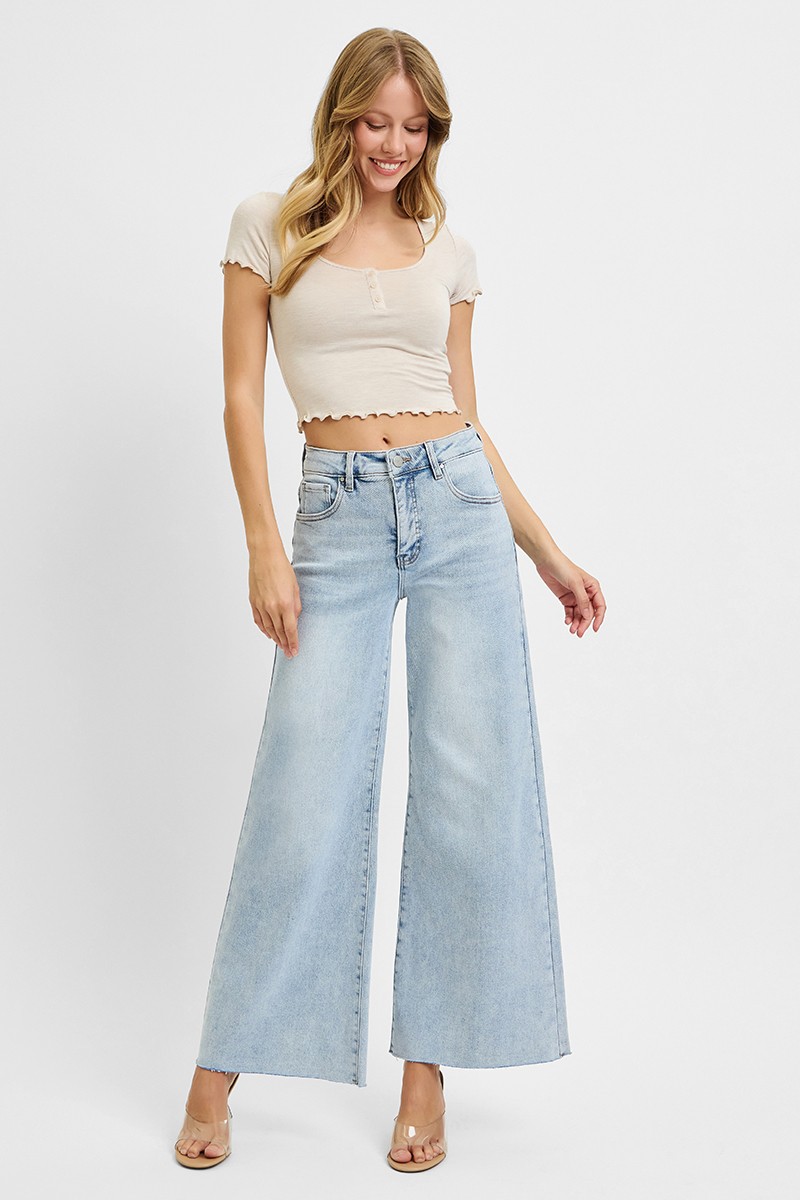 The High Rise Ankle Wide Palazzo Jeans are a fashion-forward choice for those looking to make a statement. With their high-rise waist, they offer a flattering fit that elongates the legs. The wide palazzo style adds a touch of drama and flair to your outfit, perfect for creating a bold and modern look. These jeans hit at the ankle, making them versatile for pairing with different types of footwear. Elevate your style with these trendy and eye-catching jeans that are sure to turn heads wherever you go.