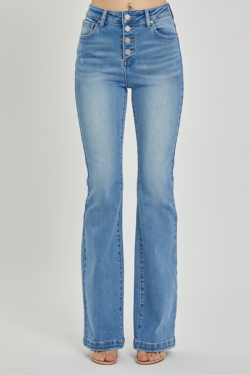 High rise button fly bootcut jeans offer a flattering silhouette that accentuates the waist while providing ample room for the legs. The button fly adds a vintage touch, making these jeans a stylish choice for various occasions. The bootcut design is versatile, allowing for easy pairing with both heels and flats. Made from comfortable denim, they ensure all-day wear without compromising on style. Whether dressed up with a chic blouse or kept casual with a simple tee, these jeans are a timeless wardrobe staple. Perfect for transitioning between seasons, they seamlessly blend comfort and fashion.
