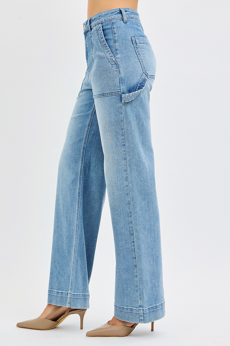 The high-rise straight leg jeans with front pockets are a classic and versatile staple for a chic and casual look. The high rise waist provides a flattering fit that accentuates the waistline and elongates the legs. With front pockets adding a functional and stylish touch, these jeans offer both practicality and fashion appeal. The straight leg cut is timeless and easy to style with a variety of tops and shoes. Pair these jeans with a tucked-in blouse and heels for a polished ensemble, or opt for a casual look with a t-shirt and sneakers for everyday wear.