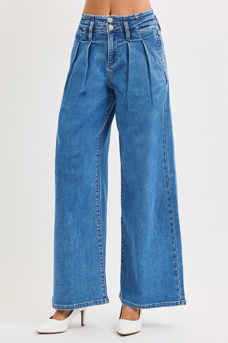 The Mid Rise Fit Wide Leg With Pleated Detail Jeans offer a stylish and sophisticated take on classic denim. With their mid-rise waist, they provide a comfortable and flattering fit that is easy to wear all day. The wide leg silhouette with pleated details adds a touch of elegance and modernity to your outfit. These jeans are perfect for creating a fashion-forward look that can be dressed up or down depending on the occasion. Elevate your wardrobe with these chic and versatile jeans that are sure to make a statement wherever you go.