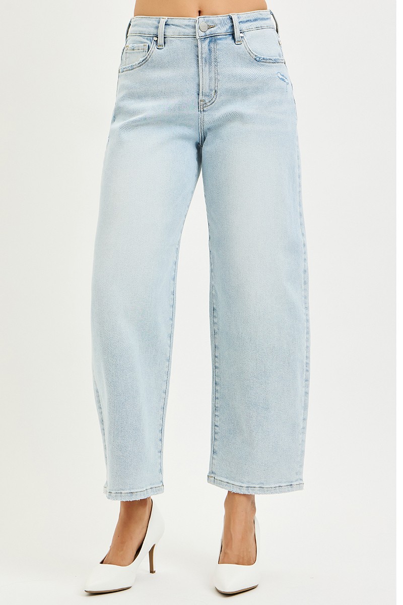 The High Rise Crop Barrel Jeans feature a flattering high-rise waist and a cropped length for a chic and modern look. The barrel fit provides a unique silhouette that is both stylish and comfortable. Made from quality denim, these jeans are durable and versatile for any occasion. Pair them with your favorite tops and shoes for a trendy outfit. Elevate your style with the fashionable High Rise Crop Barrel Jeans for a sophisticated and on-trend ensemble.
