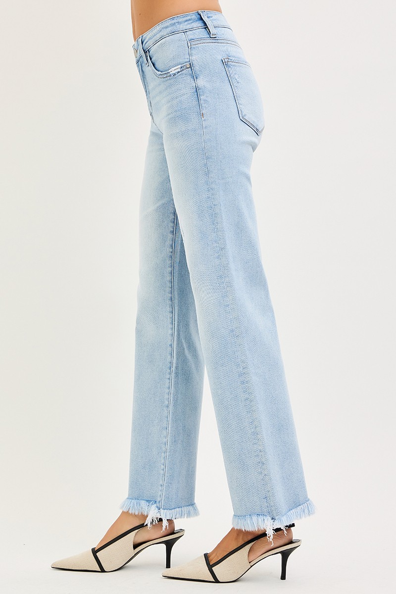 The Tummy Control Mid Rise Ankle Straight Fray Hem jeans are a stylish and flattering choice for your denim collection. The mid-rise design provides a comfortable fit and the tummy control feature helps create a smooth silhouette. The ankle length and fray hem detailing add a trendy and edgy touch to the classic straight-leg style. Perfect for everyday wear, these jeans offer both style and comfort. Elevate your outfit with these versatile and slimming jeans that are sure to become a wardrobe staple.