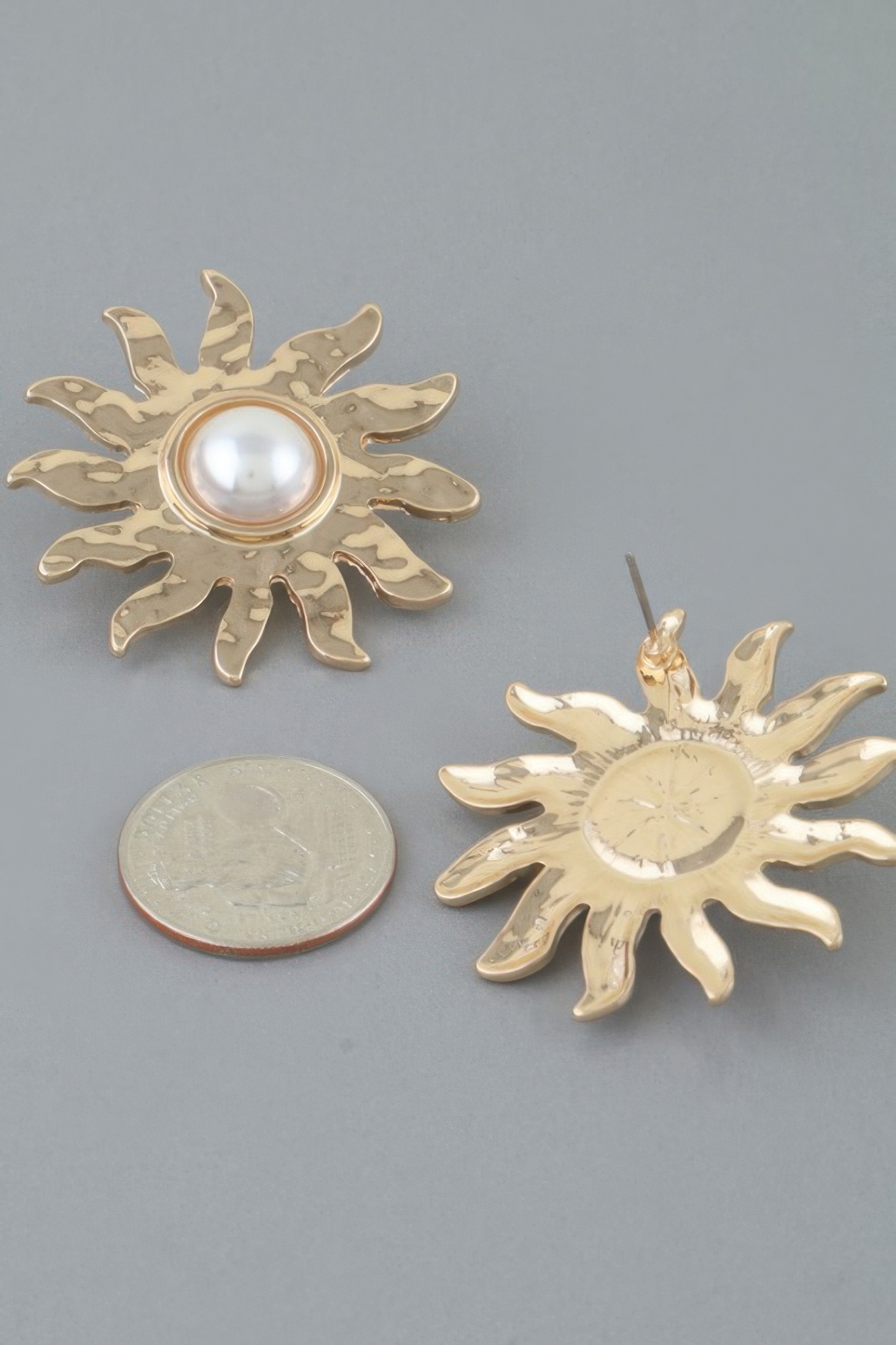 The Rising Sun Pearl Stud Earrings bring a radiant blend of elegance and statement design to your accessory collection. Each earring features a beautifully crafted sunburst inspired frame with a luminous pearl center that captures the essence of a rising sun. The textured metal finish adds a vintage inspired touch, creating depth and visual interest while maintaining a timeless feel. Designed as classic studs, these earrings offer a secure and comfortable fit that can easily transition from everyday wear to special occasions.