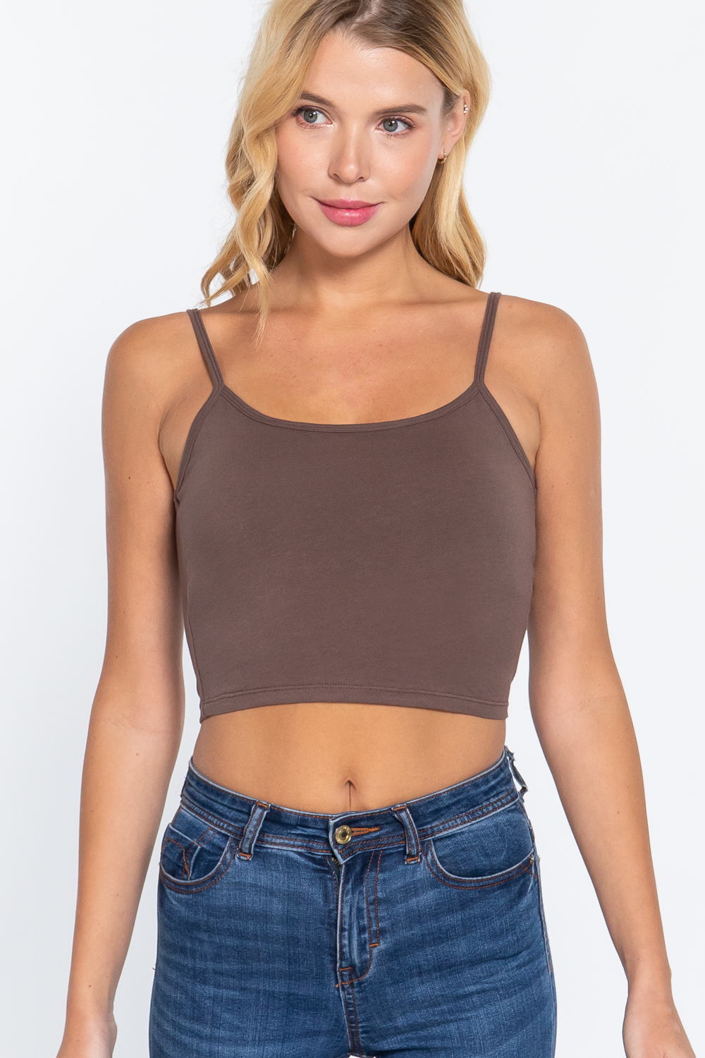 Product Description Imported S.M.L ROUND NECK w/REMOVABLE BRA CUP COTTON SPANDEX BRA TOP95% Cotton 5% SpandexWood Brown LC20-03 Item Measurements: SIZE S Measurements: SIZE SLength:10.5" Waist:30" Bust:34"