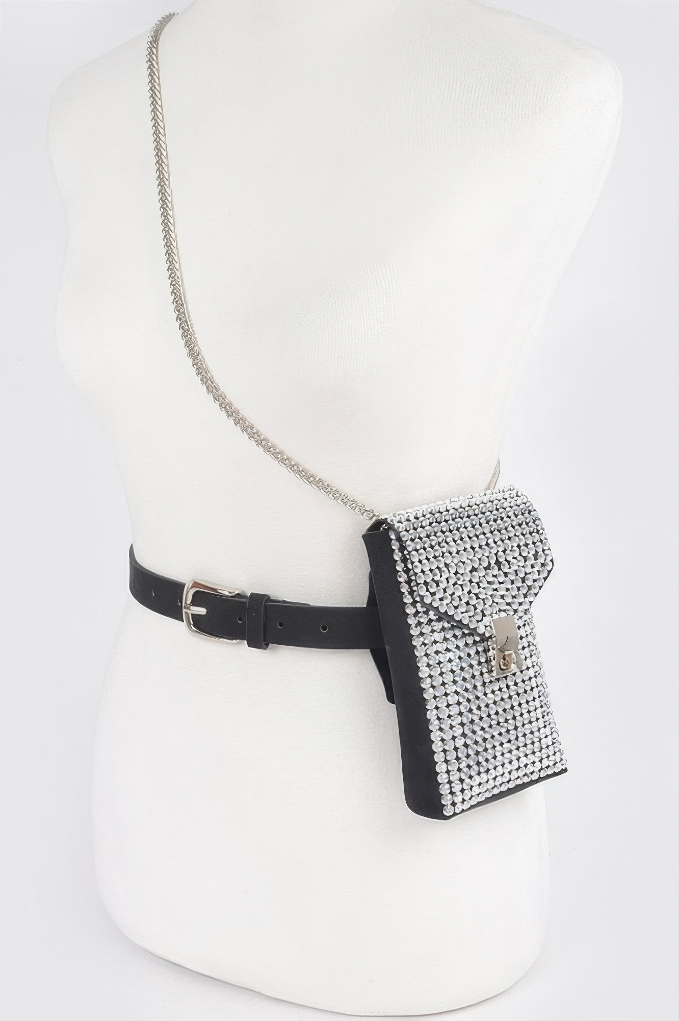 This shiny acrylic stone plus size belt bag delivers statement sparkle with hands-free convenience. Designed with acrylic stone detailing, it adds bold texture and shine. The compact pouch offers space for essentials while maintaining a sleek profile. A chain accent enhances the polished look. Adjustable belt styling allows for flexible wear around the waist or hips. Lightweight construction ensures comfortable movement. This belt bag is a standout accessory for elevated everyday looks.