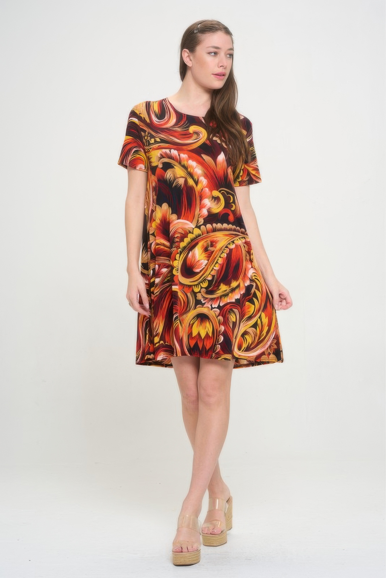 The BNS Missy Short-Sleeved Knee-Length Dress is a wardrobe staple that blends comfort with timeless style. Crafted from a wrinkle-free, stretch fabric, it offers effortless wear and a flattering fit. The knee-length cut provides easy movement, while the short sleeves and round neckline keep it fresh and versatile. With a unique print design that varies slightly with each piece, this dress adds a personal touch to your look. It's an ideal option for everyday wear, weekend outings, or travel-friendly packing.