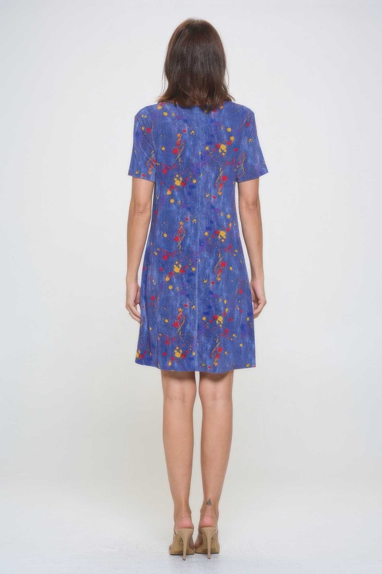 A standout staple, this short-sleeved knee-length dress blends effortless wear with eye-catching design. Made from a soft, stretch-infused fabric, it drapes comfortably while maintaining a polished look. The all-over print ensures visual impact, and the wrinkle-free quality makes it perfect for travel or busy days. Designed to flatter with every wear, this USA-made dress brings bold style to everyday life.