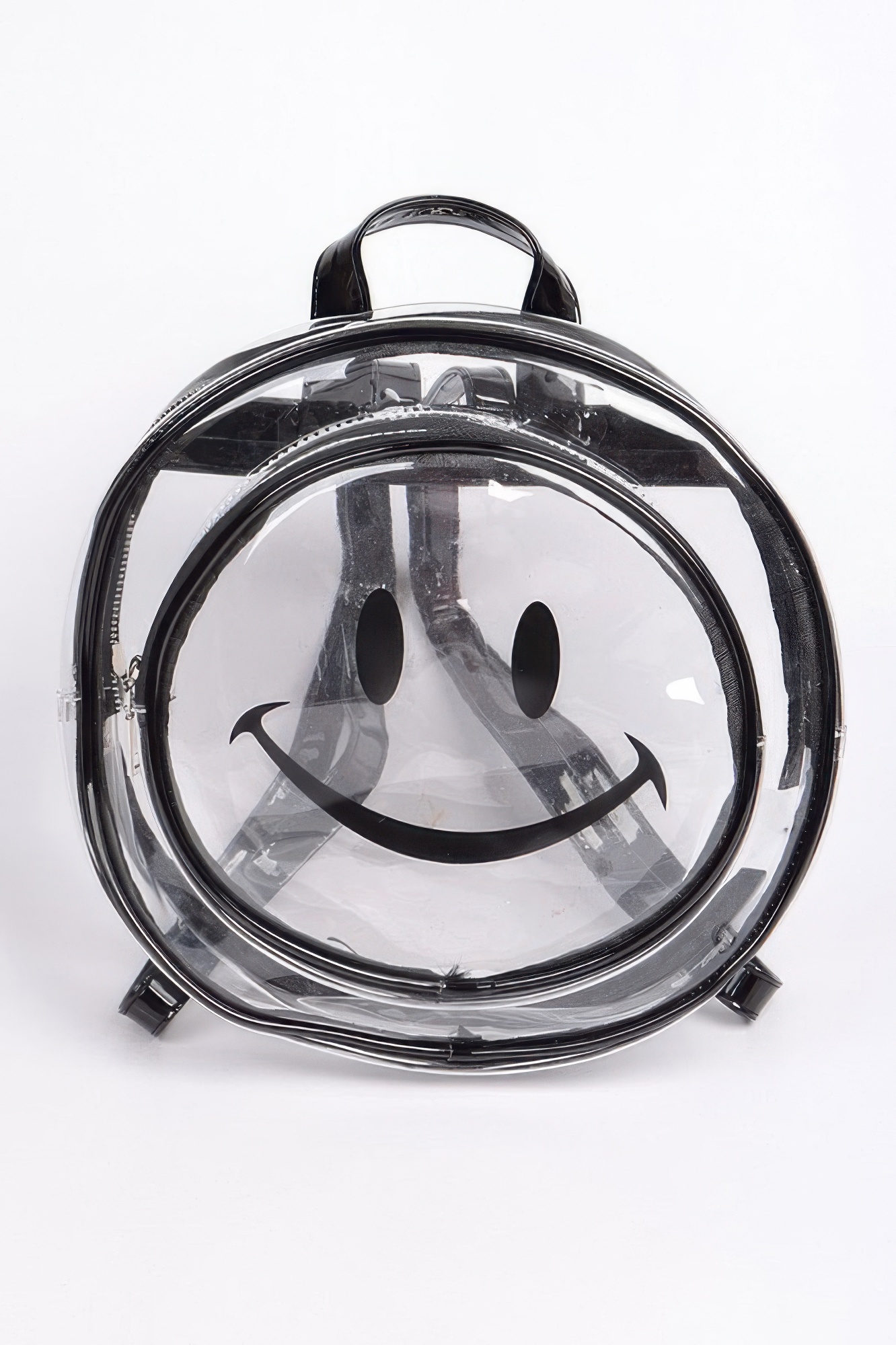 Smile Clear Backpack combines playful design with functional utility in a see-through structure. Crafted from polyurethane and mixed metal, it offers durability while allowing you to showcase your contents. Measuring approximately 11 x 11 x 3 inches, it’s sized for daily use while staying lightweight. The cheerful smiley face graphic adds a fun, expressive twist to your look. Perfect for concerts, events, or everyday wear where clear bags are required. It features adjustable straps for a comfortable fit and a zip closure for secure storage. This backpack brings positivity and practicality in one cute package.