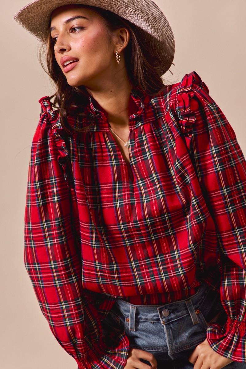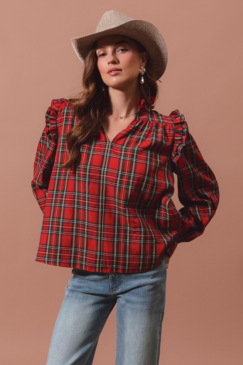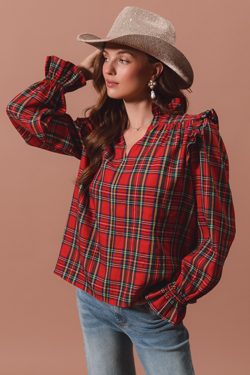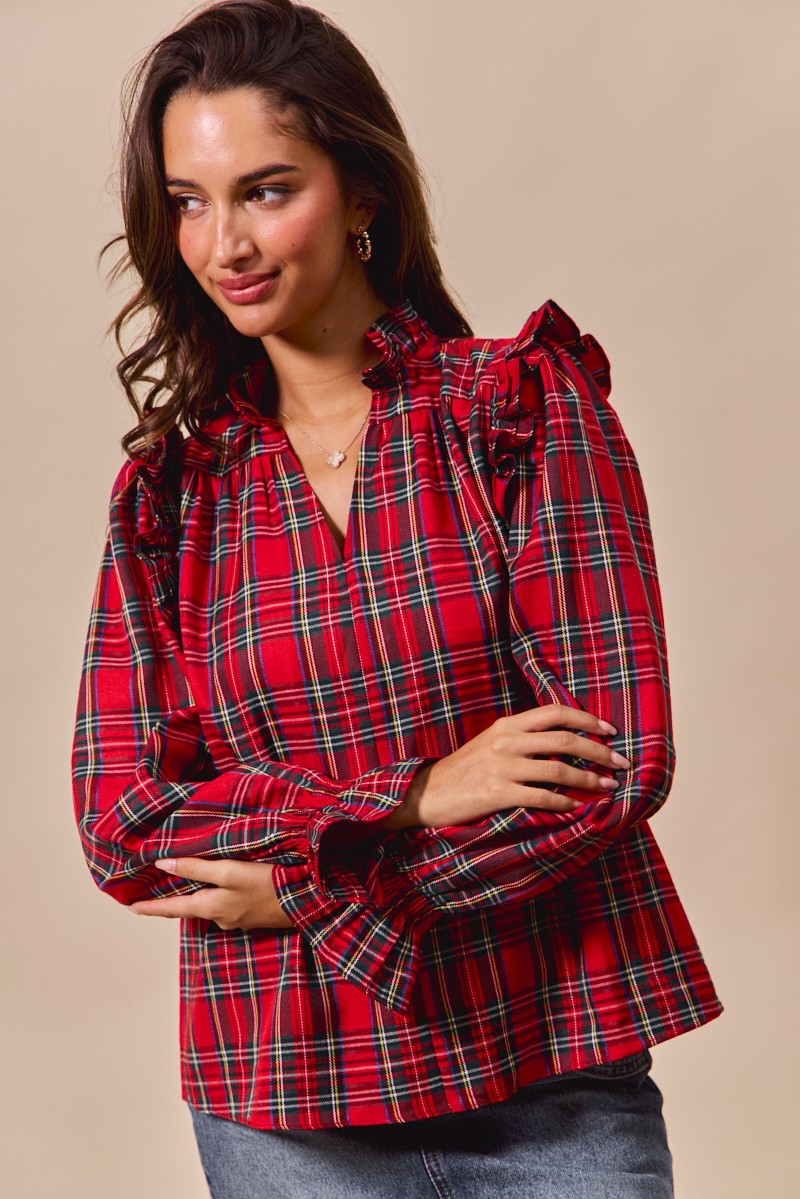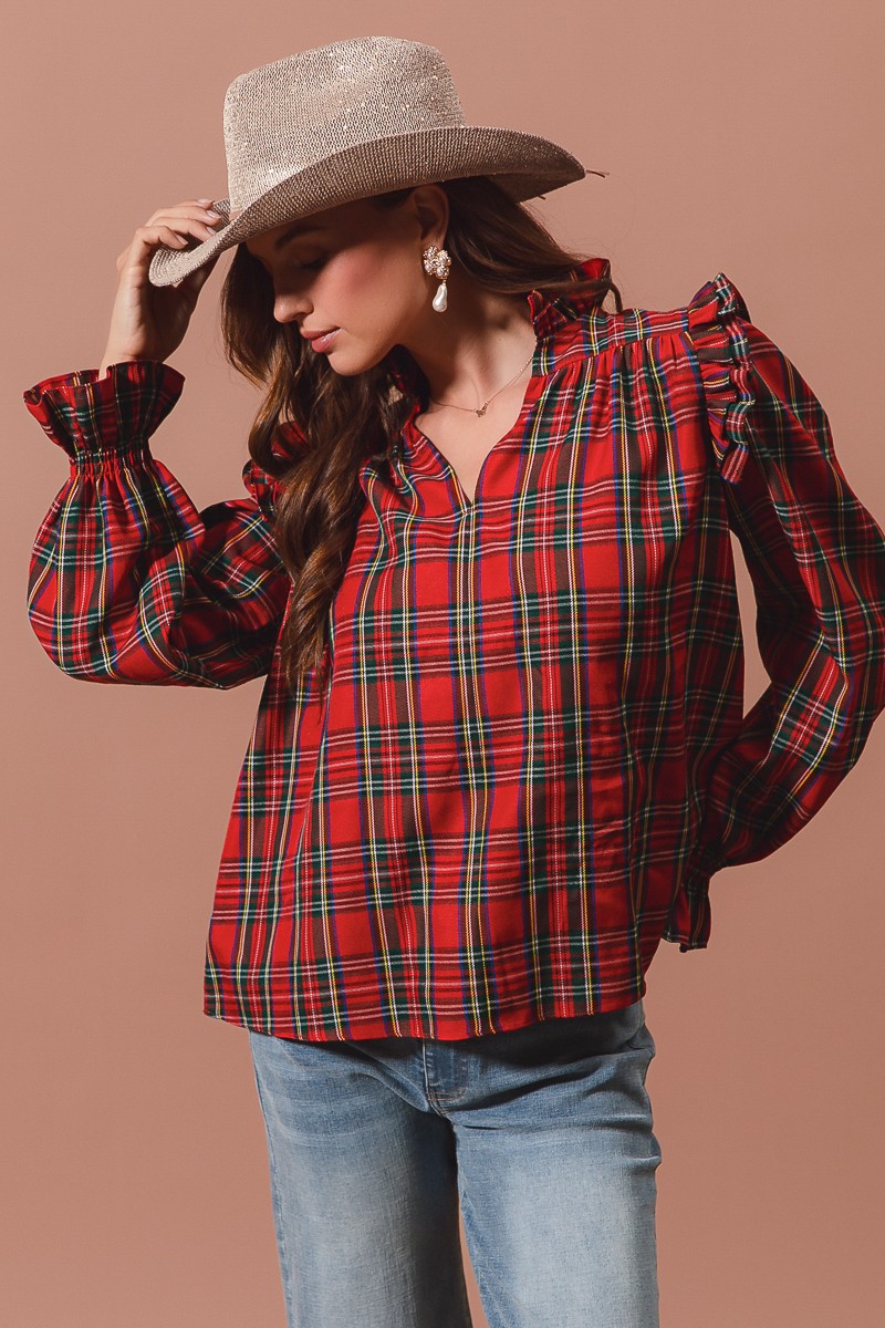 Get into the holiday spirit with this charming Christmas checkered plaid smocked blouse. The classic plaid pattern adds a touch of festive flair to your outfit. The smocked detail offers a flattering and comfortable fit for all-day wear. Perfect for holiday gatherings, parties, or casual outings during the season. Pair it with jeans or a skirt for a stylish and festive look this Christmas.