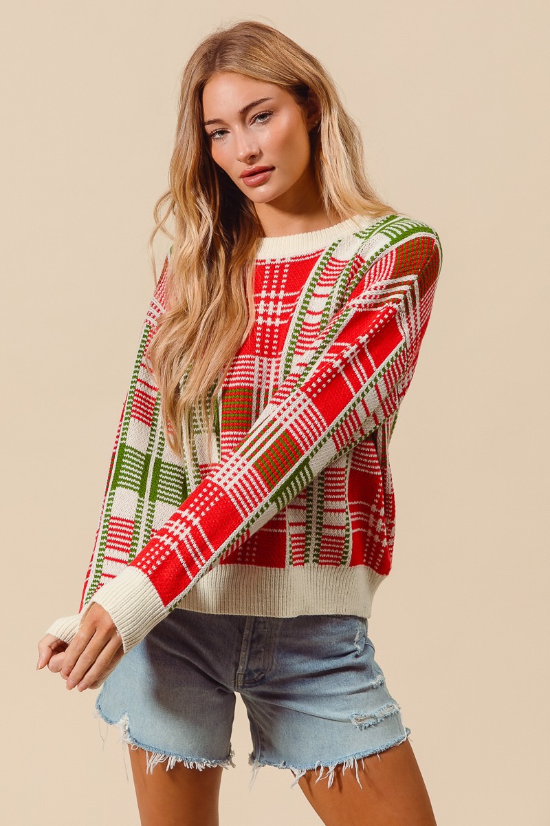 The Christmas color checkered plaid crew neck sweater is a festive and stylish choice for the holiday season. Featuring a classic checkered plaid pattern in traditional Christmas colors, this sweater captures the spirit of the season. The crew neck design offers a versatile and timeless silhouette, perfect for festive gatherings or casual outings. Stay cozy and warm with the soft and comfortable fabric of this sweater. Embrace the holiday cheer with this Christmas color checkered plaid crew neck sweater that combines style and festive spirit effortlessly.