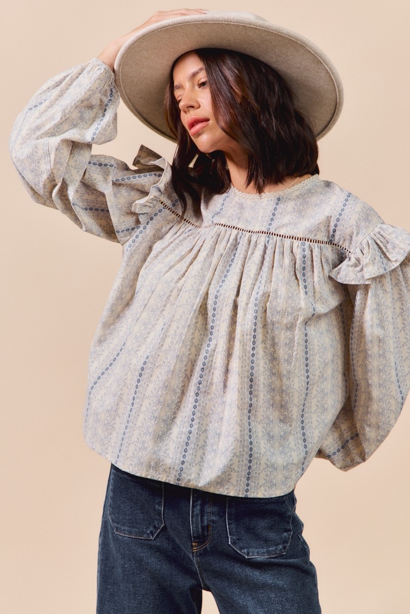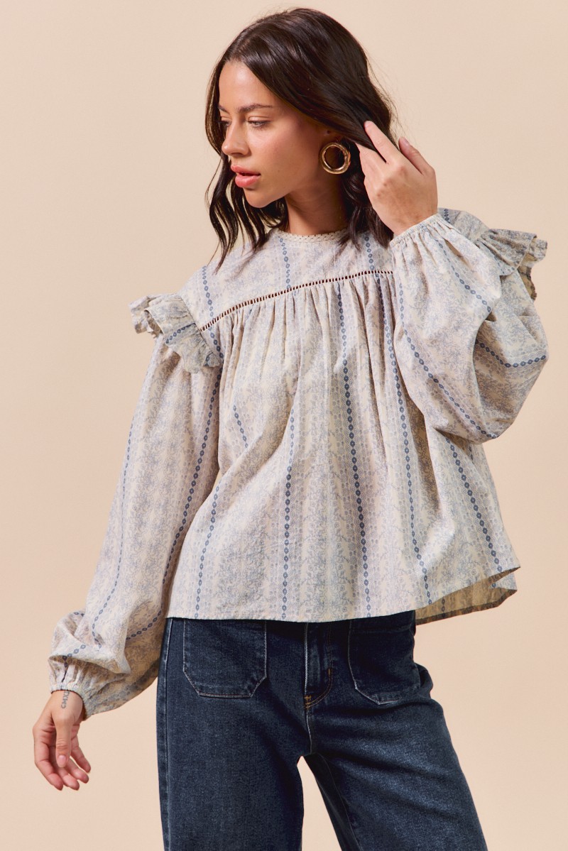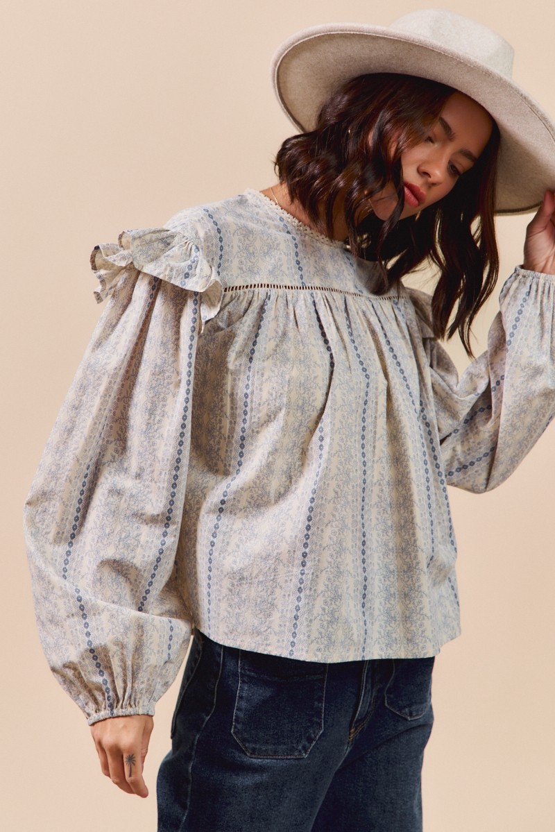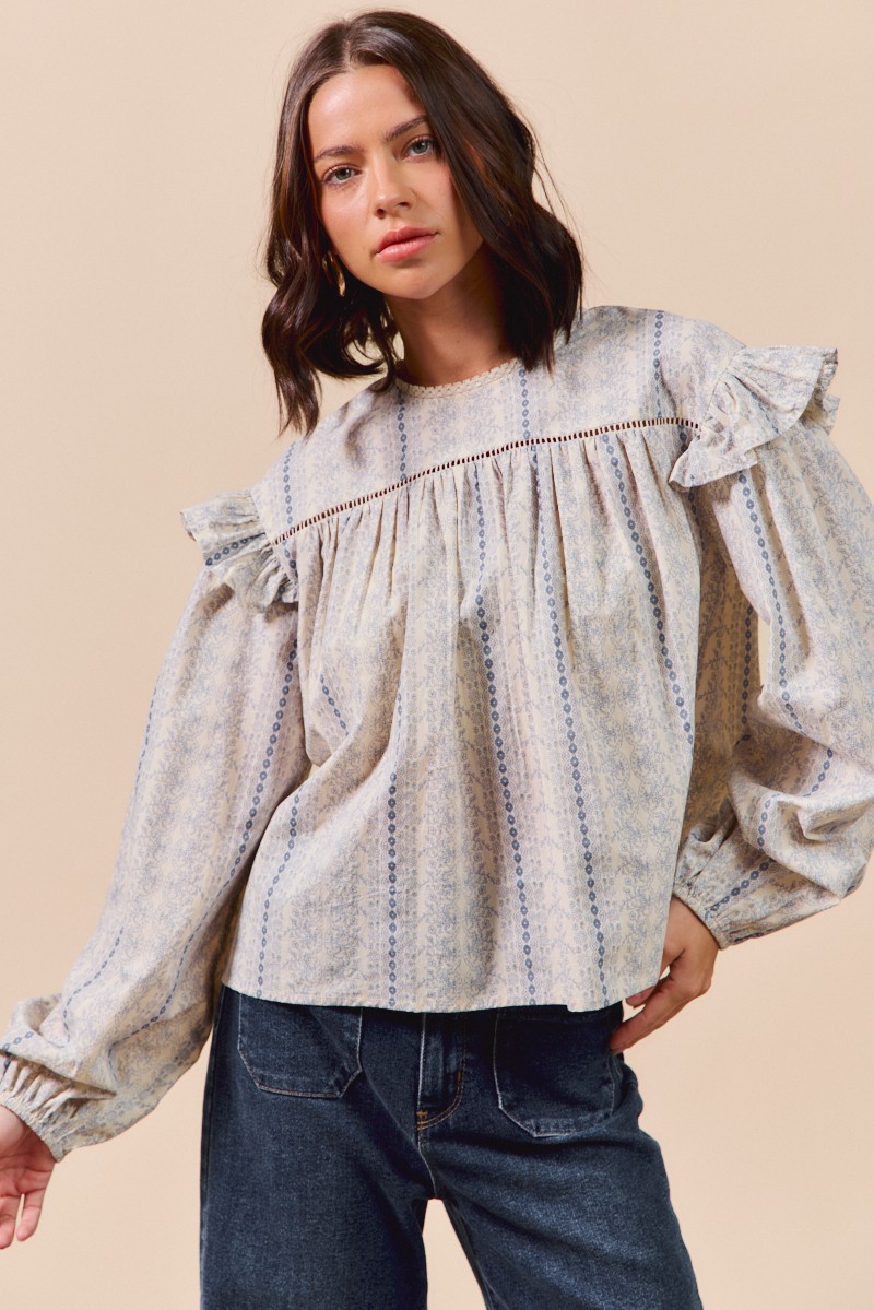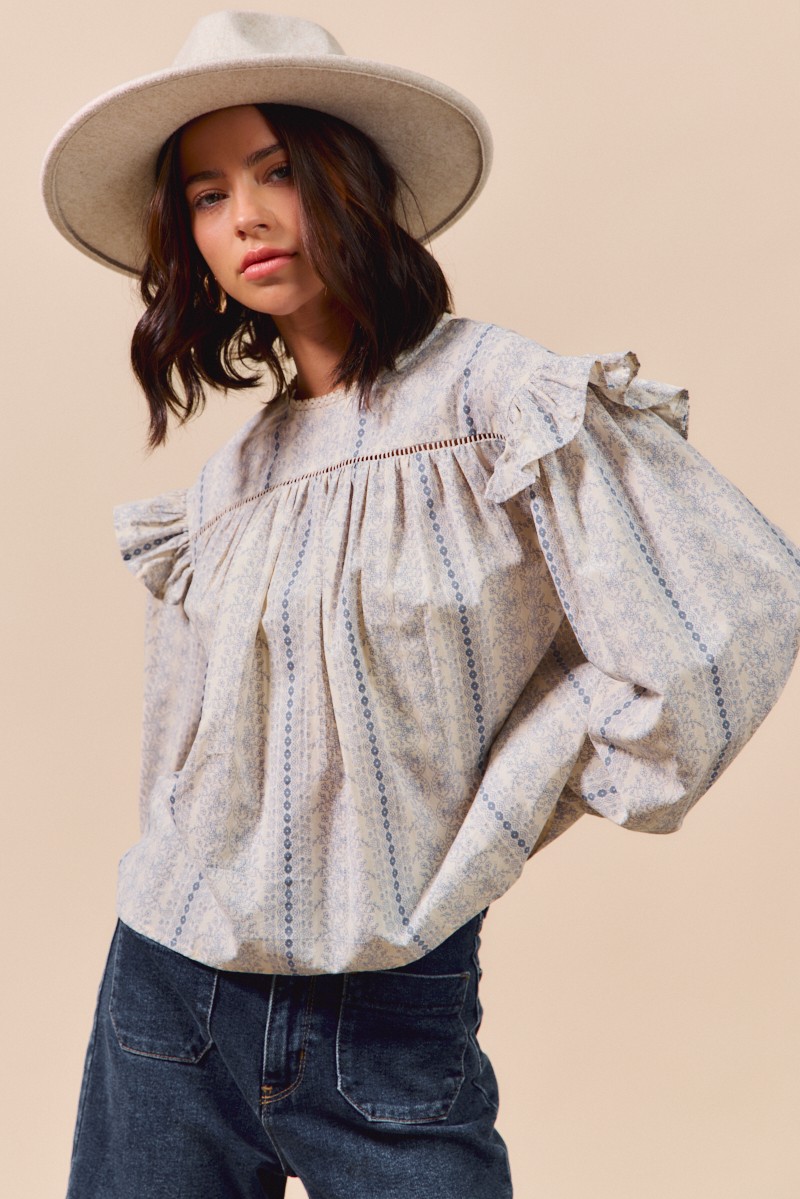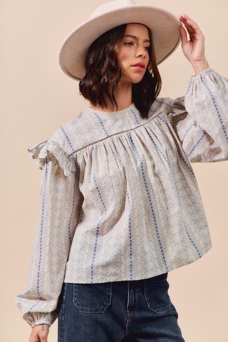 The Floral Cotton Print Ruffled Long Sleeve Blouse is a feminine and charming addition to your wardrobe. The floral print adds a touch of romance and elegance to this blouse. Featuring ruffled details, it exudes a soft and delicate vibe. With long sleeves, this blouse is perfect for transitioning between seasons while maintaining a chic look. Pair it with your favorite jeans or a skirt for a fresh and stylish outfit. Elevate your ensemble with the Floral Cotton Print Ruffled Long Sleeve Blouse for a lovely and sophisticated look.