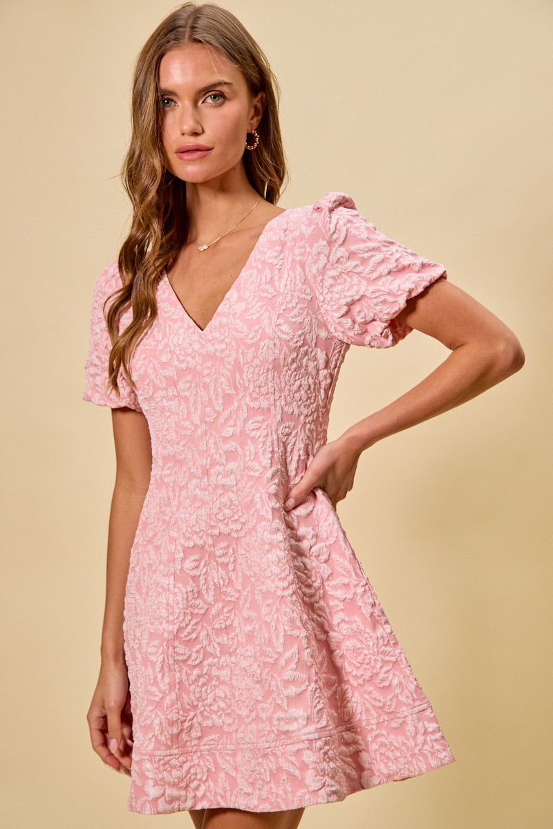 Introducing the Floral Jacquard Fit And Flare Daily Mini Dress, a charming and versatile choice for any day. This dress features a beautiful floral jacquard pattern that adds a touch of elegance to the design. The fit and flare silhouette flatters the figure while offering a comfortable and easy-to-wear style. Perfect for daily wear, this mini dress is both stylish and practical. Dress it up with heels for a special occasion or pair it with flats for a more casual look.