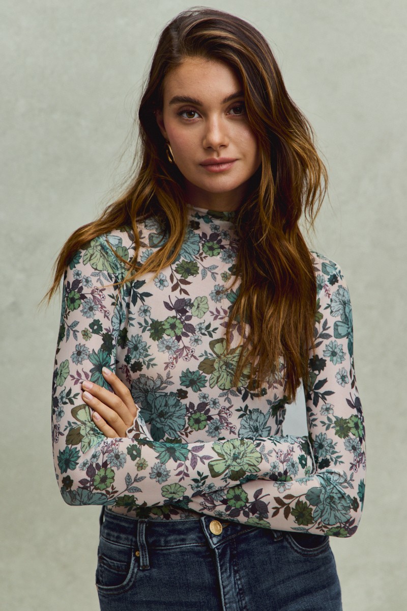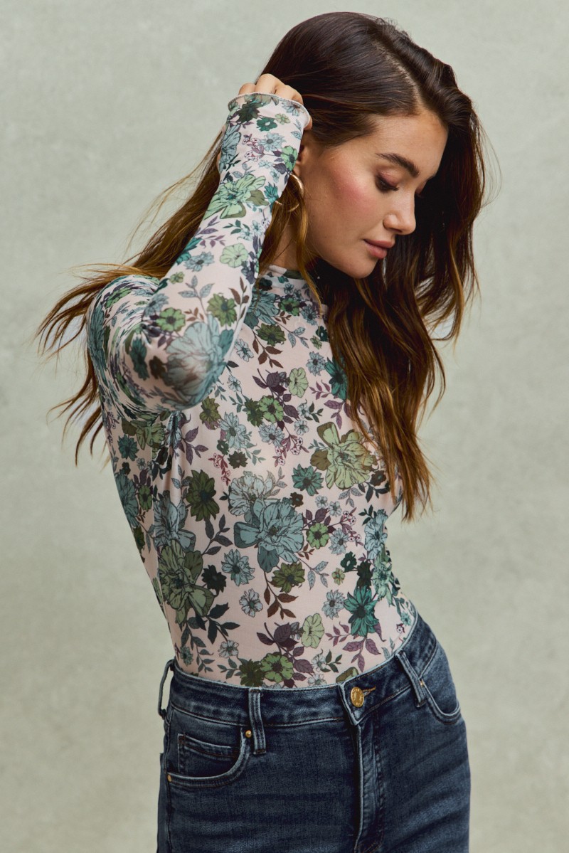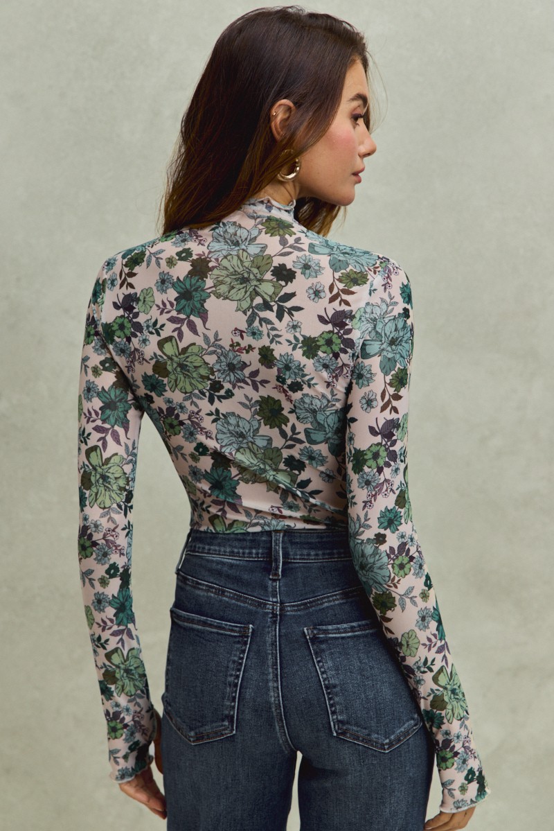 The Floral Print Mesh Knit Long Sleeves Top combines femininity and sophistication in one stylish piece. The floral print detailing adds a touch of elegance and charm to the top's design. Made from mesh knit fabric, this top offers breathability and visual interest with its textured finish. The long sleeves provide coverage while still remaining lightweight and comfortable. Perfect for layering or wearing on its own, this top is a versatile and fashionable choice for a variety of occasions.