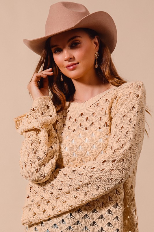 The geometric pattern open knit lightweight sweater top is a fashionable and airy choice for your wardrobe. The geometric pattern adds a modern and eye-catching touch to the top, while the open knit design offers breathability and a light feel. Perfect for layering over a camisole or bralette, this top is ideal for transitioning between seasons. Pair it with jeans or shorts for a stylish and comfortable outfit with a touch of flair.