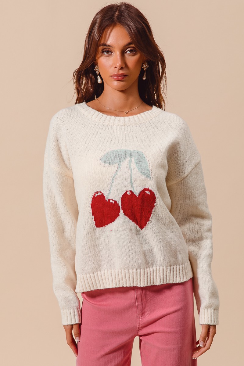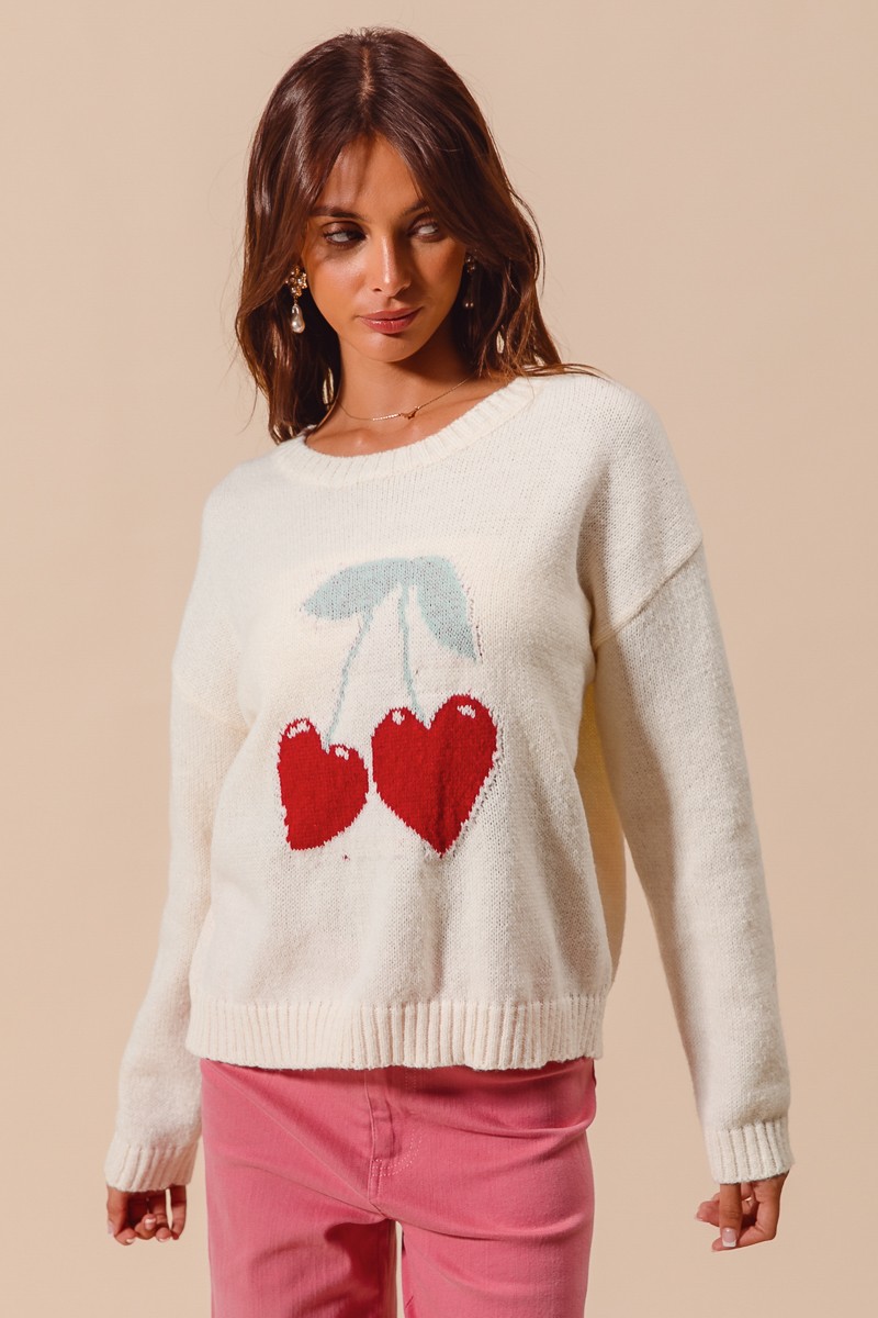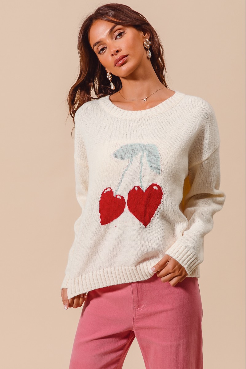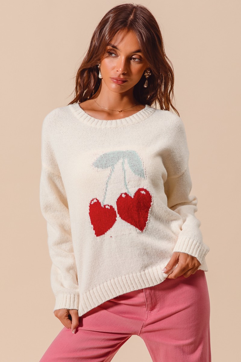 The Heart Cherry Knitted Valentine Sweater Top is a charming and festive choice for celebrating the holiday of love. Featuring adorable heart and cherry motifs, this sweater is perfect for adding a touch of whimsy to your outfit. The knitted texture provides warmth and coziness, making it ideal for chilly days. Pair this sweater with jeans or a skirt for a cute and cheerful Valentine's Day look. Embrace the spirit of love and fun with this delightful sweater top.
