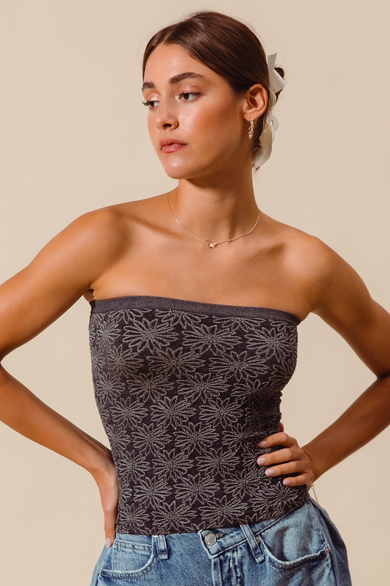 This stylish strapless cami tank features an eye-catching geometric print pattern that adds visual interest to any outfit. Made from stretchy, breathable fabric that provides comfort and flexibility throughout the day. The bandeau-style design offers a flattering fit that accentuates the silhouette while remaining versatile enough to pair with high-waisted jeans, skirts, or layer under blazers. The cropped length and seamless construction make it perfect for creating fashion, fashion-forward looks. The intricate pattern combines dark base tones with contrasting geometric motifs, making it suitable for both casual and dressy occasions.