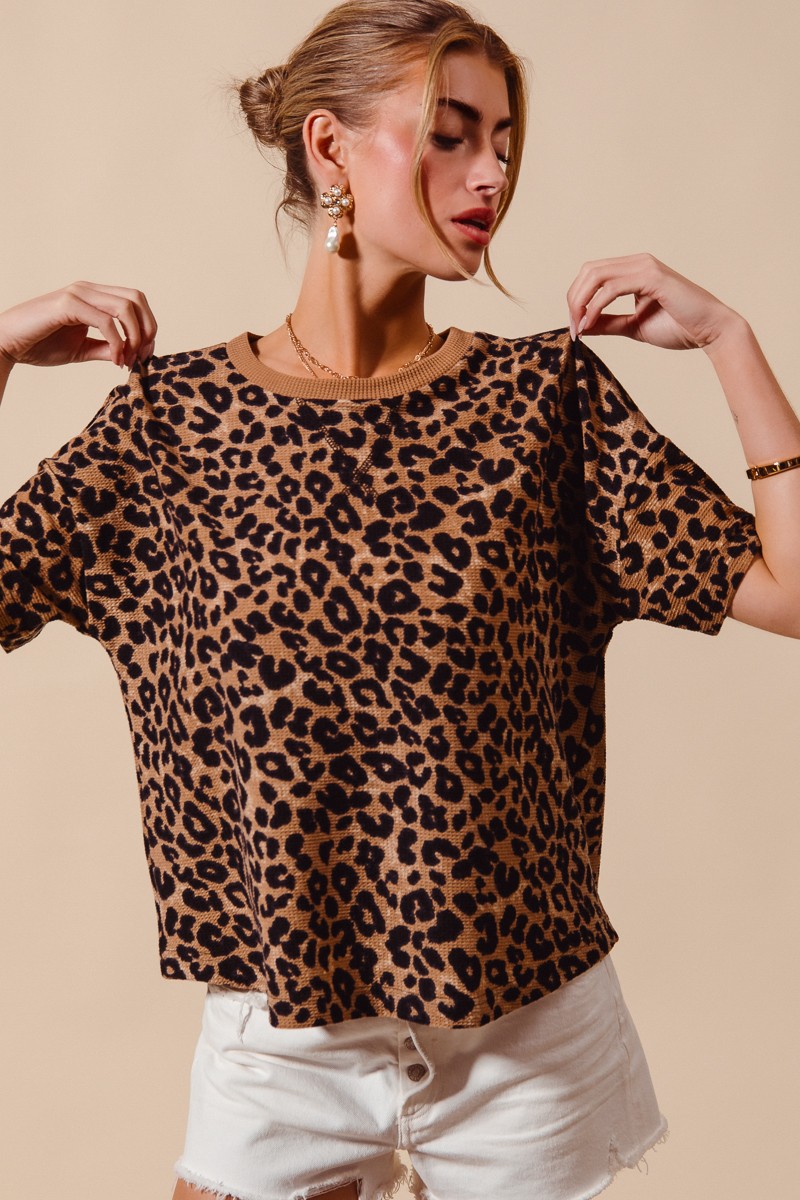 This fashion T-shirt features a bold leopard print, perfect for adding a touch of wild style to your wardrobe. The relaxed fit ensures all-day comfort, while the soft and breathable fabric keeps you cool. The classic round neckline and short sleeves make it a versatile piece that can be dressed up or down. Ideal for casual outings, weekend adventures, or simply lounging at home, this leopard print T-shirt is a must-have for any fashion-conscious individual.