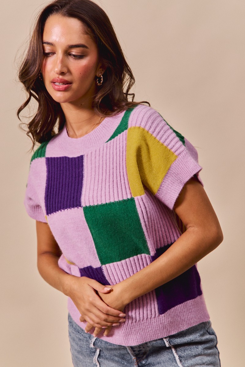 The Mardi Gras Check Plaid Casual Sweater Top is a fantastic addition to your spring wardrobe, featuring a unique check plaid pattern that exudes a relaxed and casual vibe. This sweater allows you to effortlessly showcase a blend of style and comfort. Pair it with jeans or shorts for a trendy everyday look that will surely stand out. Whether you're running errands or hanging out with friends, this sweater is perfect for both casual outings and laid-back social gatherings. Stay stylish and cozy with this versatile piece that offers a touch of charm to any outfit.