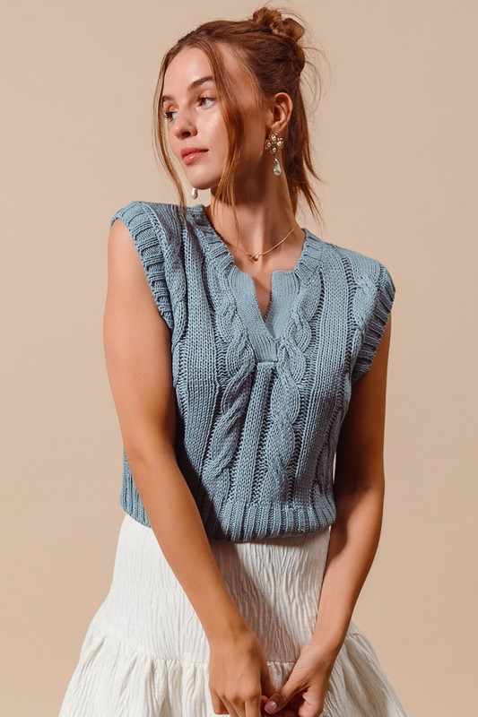 The Notched Neck Cable Knit Sweater Vest is a classic and stylish addition to your wardrobe. Featuring a cable knit design and a notched neckline, this sweater vest offers a timeless and sophisticated look. Perfect for layering over shirts or blouses, it adds warmth and texture to your outfit. Pair it with jeans or trousers for a polished and put-together ensemble.